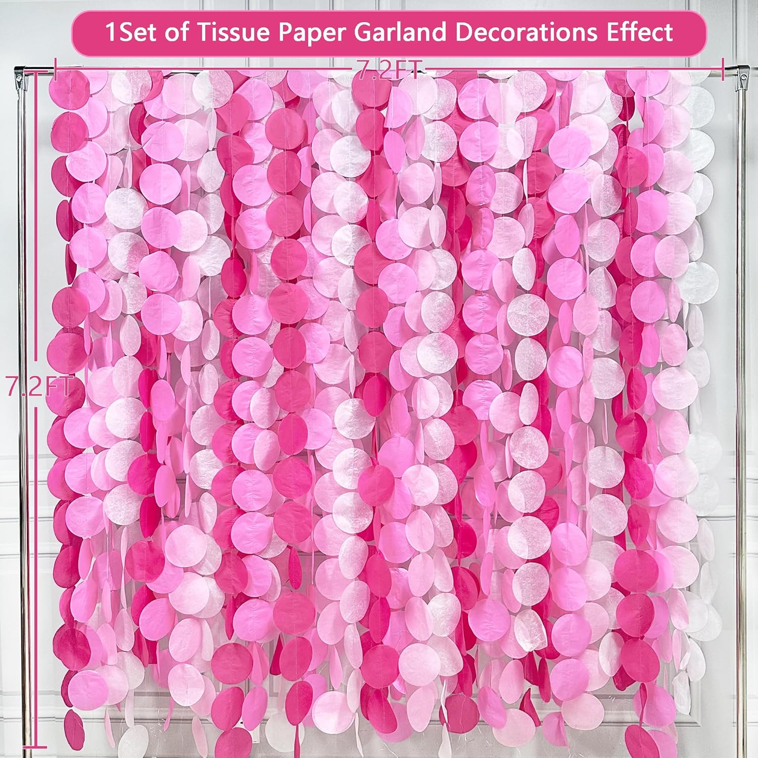 • ENVIRONMENTAL MATERIAL-Our rose pink big circle dot streamer garland are made of high quality tissue paper,carefully hand-made and machine-sewn together with thread.durable and reusable.Unroll & unwrap the tissue paper garland carefully. Due to delicate nature of thread, may tangle.