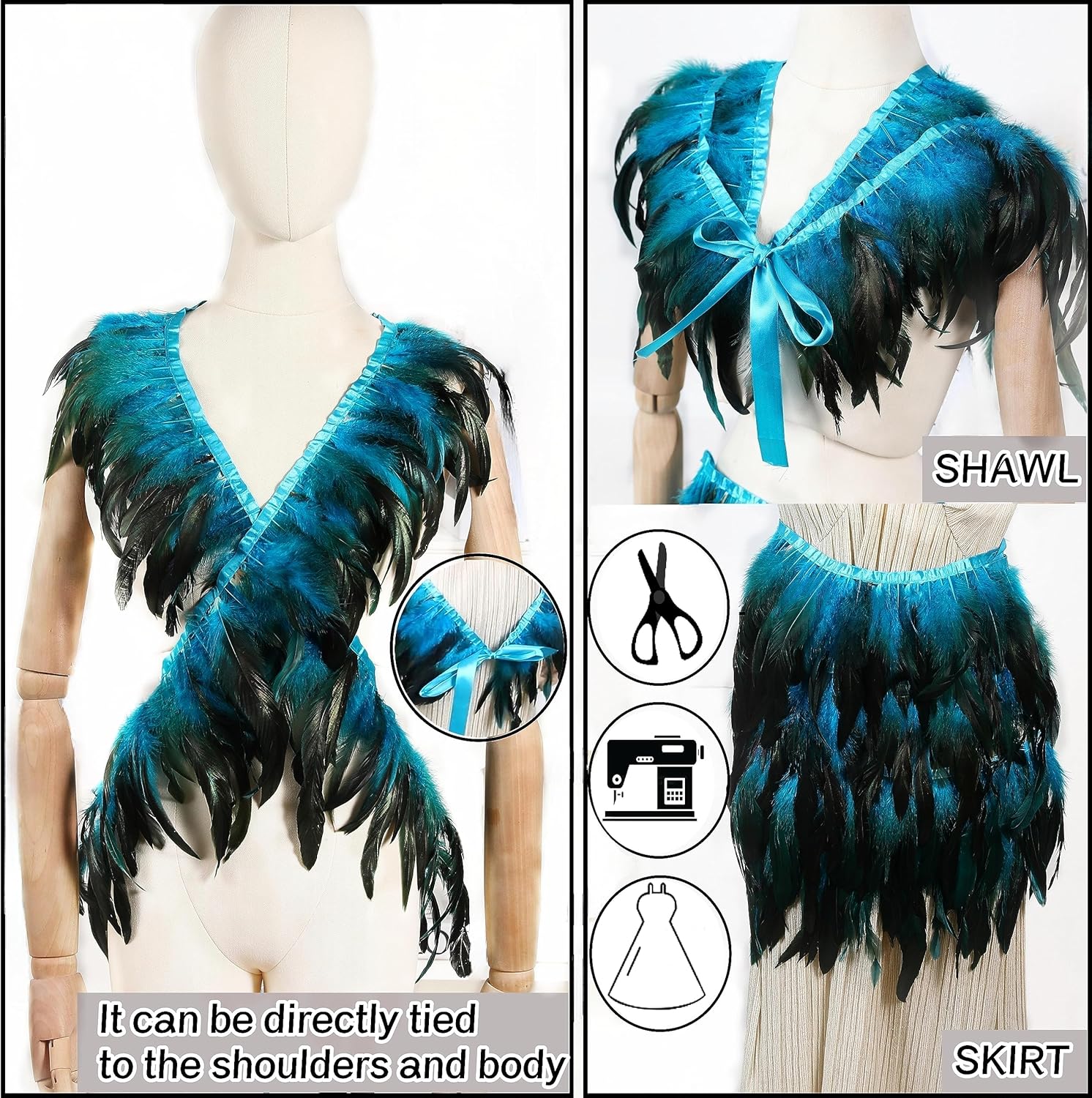 • Unique Feather Shawl: Each feather trim has an additional 15 inch ribbon at both ends that can be tied directly to the shoulders and body to create a shawl. The unique design sets you apart from the crowd, ideal for carnival party to complement chic outfits