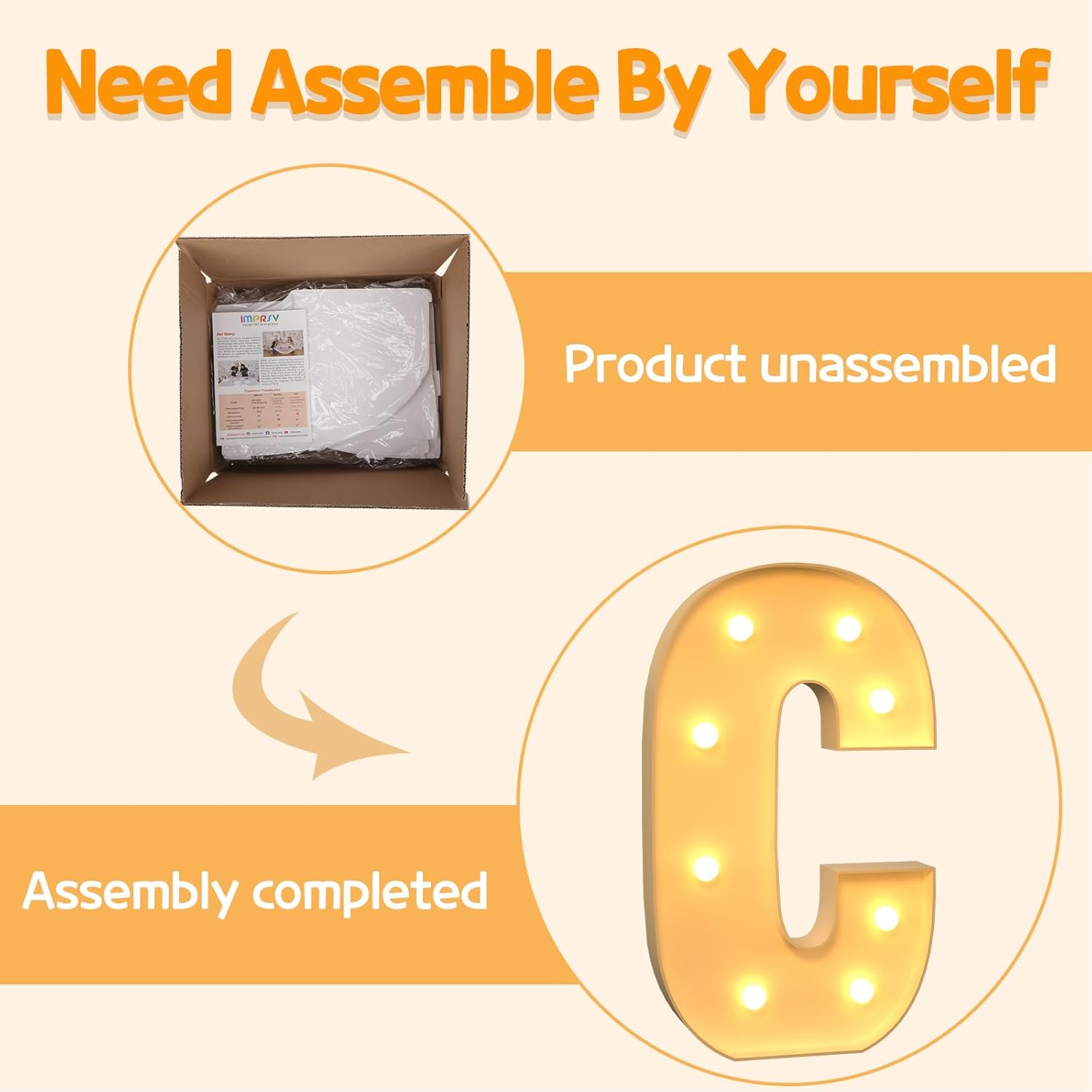 • Assembly Required: Our large marquee letters is made from foam board and easy to assemble with our splicing mode. Just follow the numbered instructions to align and insert the bottom plate, and reinforce it with a hot glue gun. Then, you're done!