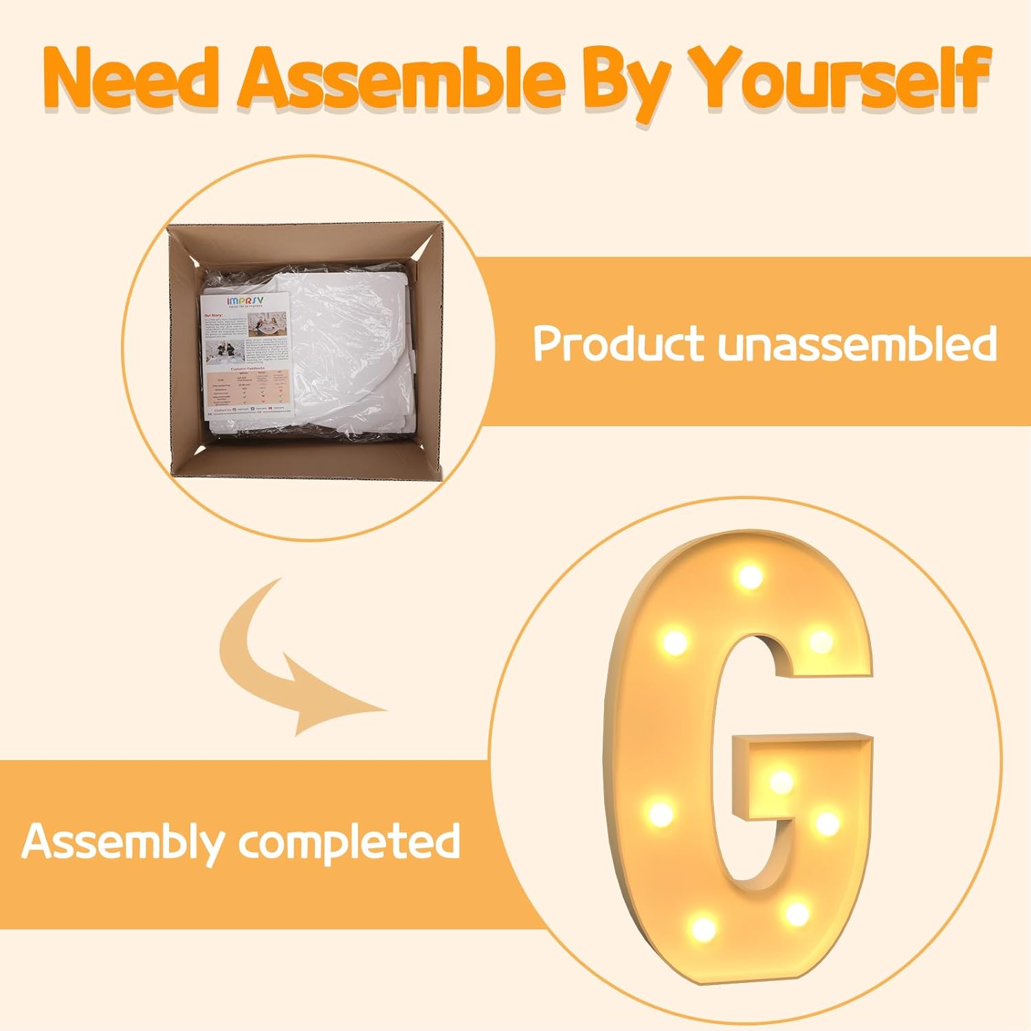 • Assembly Required: Our large marquee letters is made from foam board and easy to assemble with our splicing mode. Just follow the numbered instructions to align and insert the bottom plate, and reinforce it with a hot glue gun. Then, you're done!