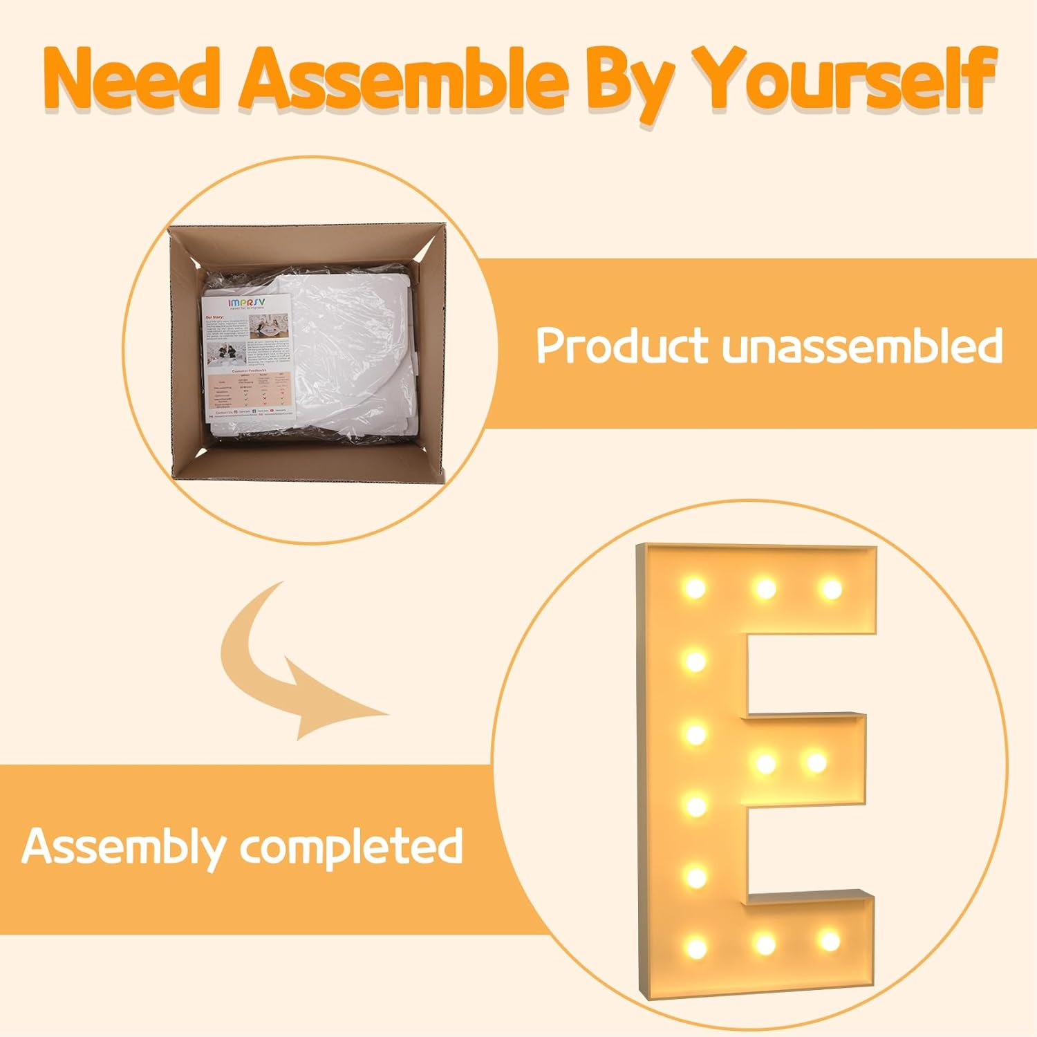 • Assembly Required: Our large marquee letters is made from foam board and easy to assemble with our splicing mode. Just follow the numbered instructions to align and insert the bottom plate, and reinforce it with a hot glue gun. Then, you're done!