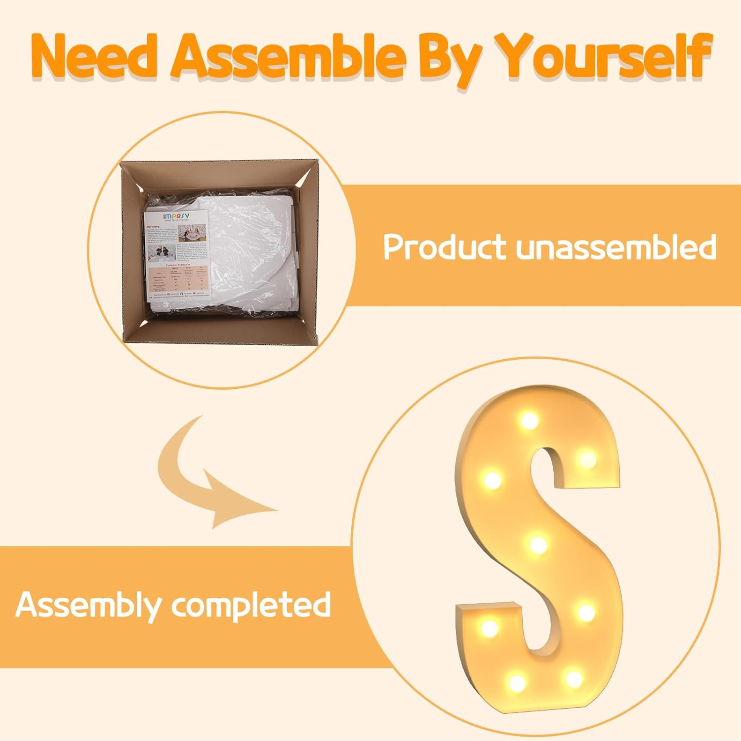 • Assembly Required: Our large marquee letters is made from foam board and easy to assemble with our splicing mode. Just follow the numbered instructions to align and insert the bottom plate, and reinforce it with a hot glue gun. Then, you're done!