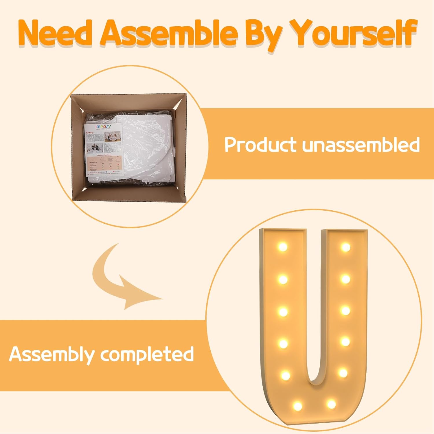 • Assembly Required: Our large marquee letters is made from foam board and easy to assemble with our splicing mode. Just follow the numbered instructions to align and insert the bottom plate, and reinforce it with a hot glue gun. Then, you're done!
