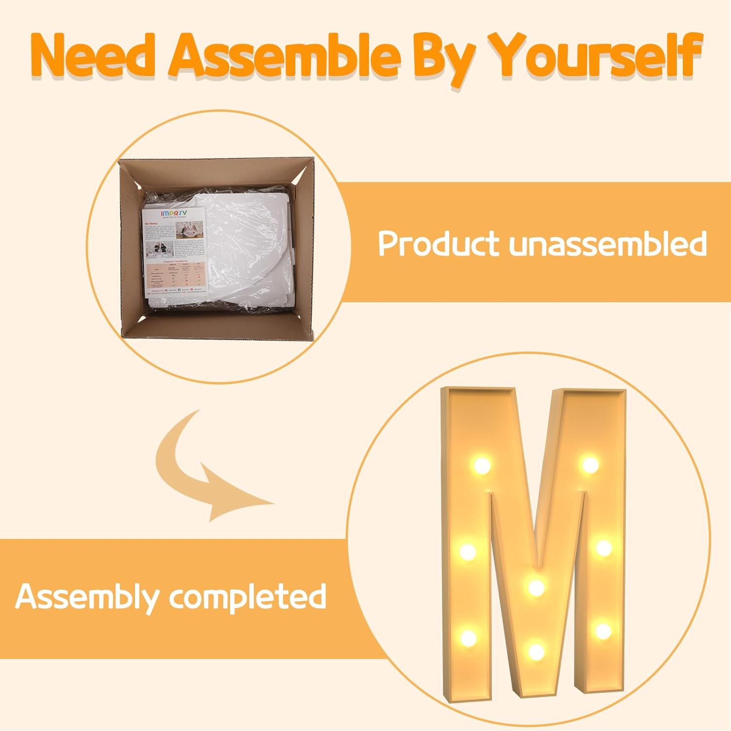 • Assembly Required: Our large marquee letters is made from foam board and easy to assemble with our splicing mode. Just follow the numbered instructions to align and insert the bottom plate, and reinforce it with a hot glue gun. Then, you're done!