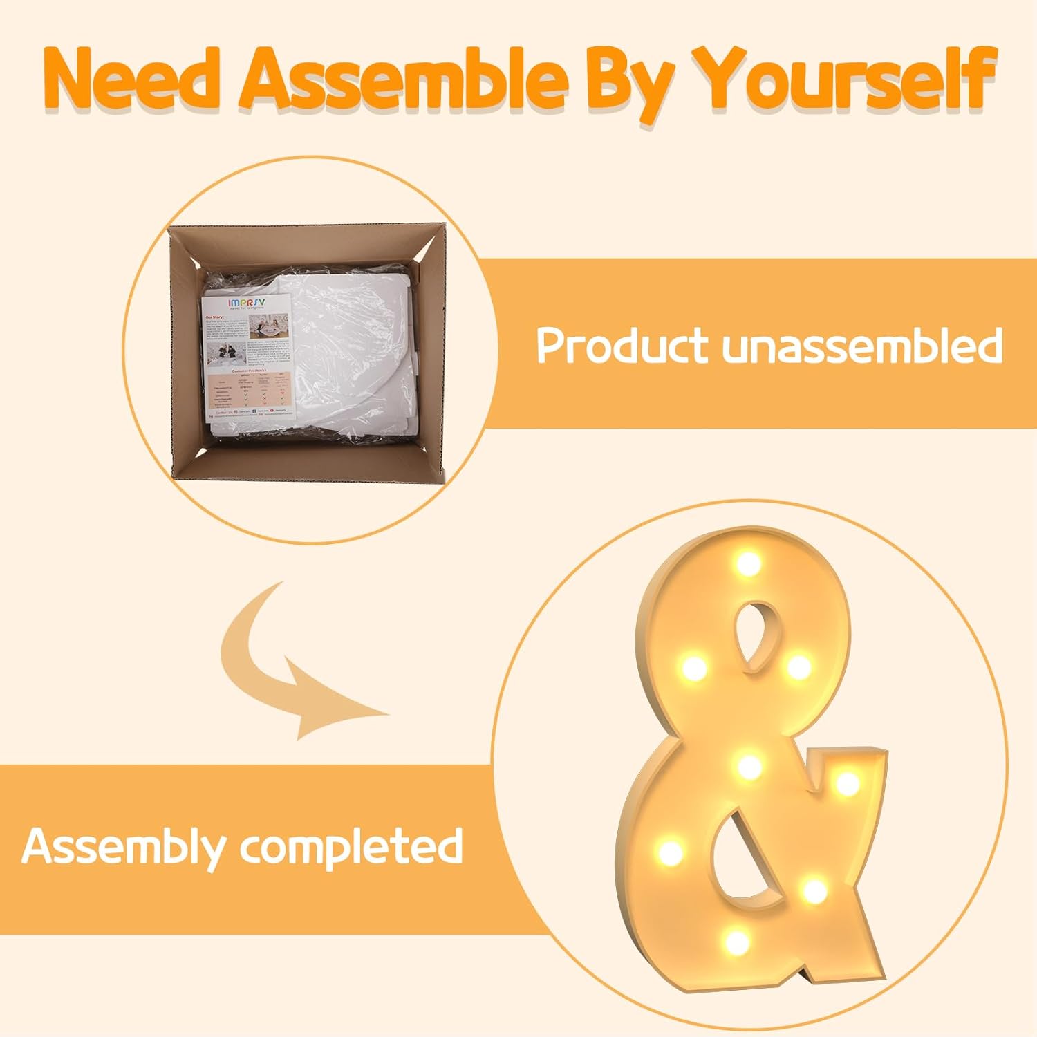 • Assembly Required: Our large marquee letters is made from foam board and easy to assemble with our splicing mode. Just follow the numbered instructions to align and insert the bottom plate, and reinforce it with a hot glue gun. Then, you're done!