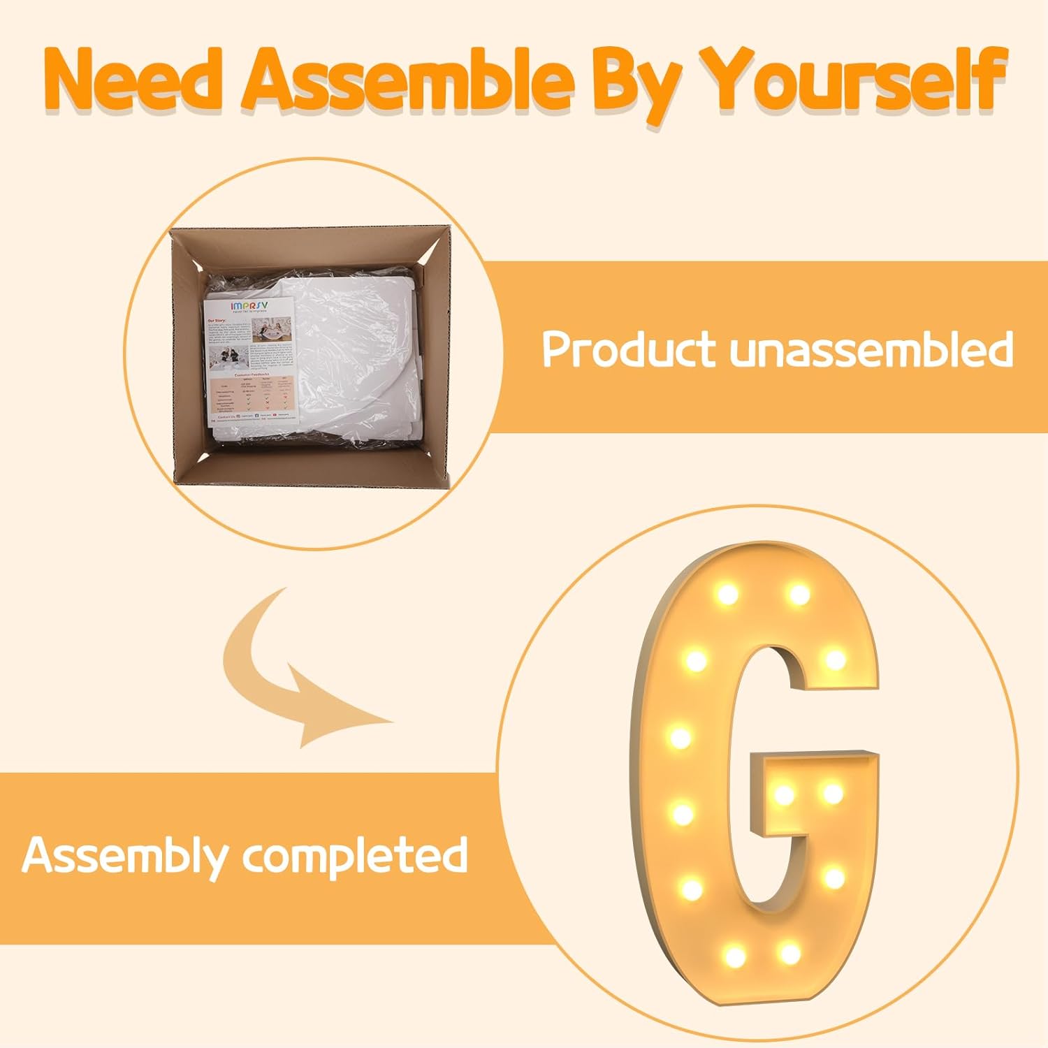 • Assembly Required: Our large marquee letters is made from foam board and easy to assemble with our splicing mode. Just follow the numbered instructions to align and insert the bottom plate, and reinforce it with a hot glue gun. Then, you're done!