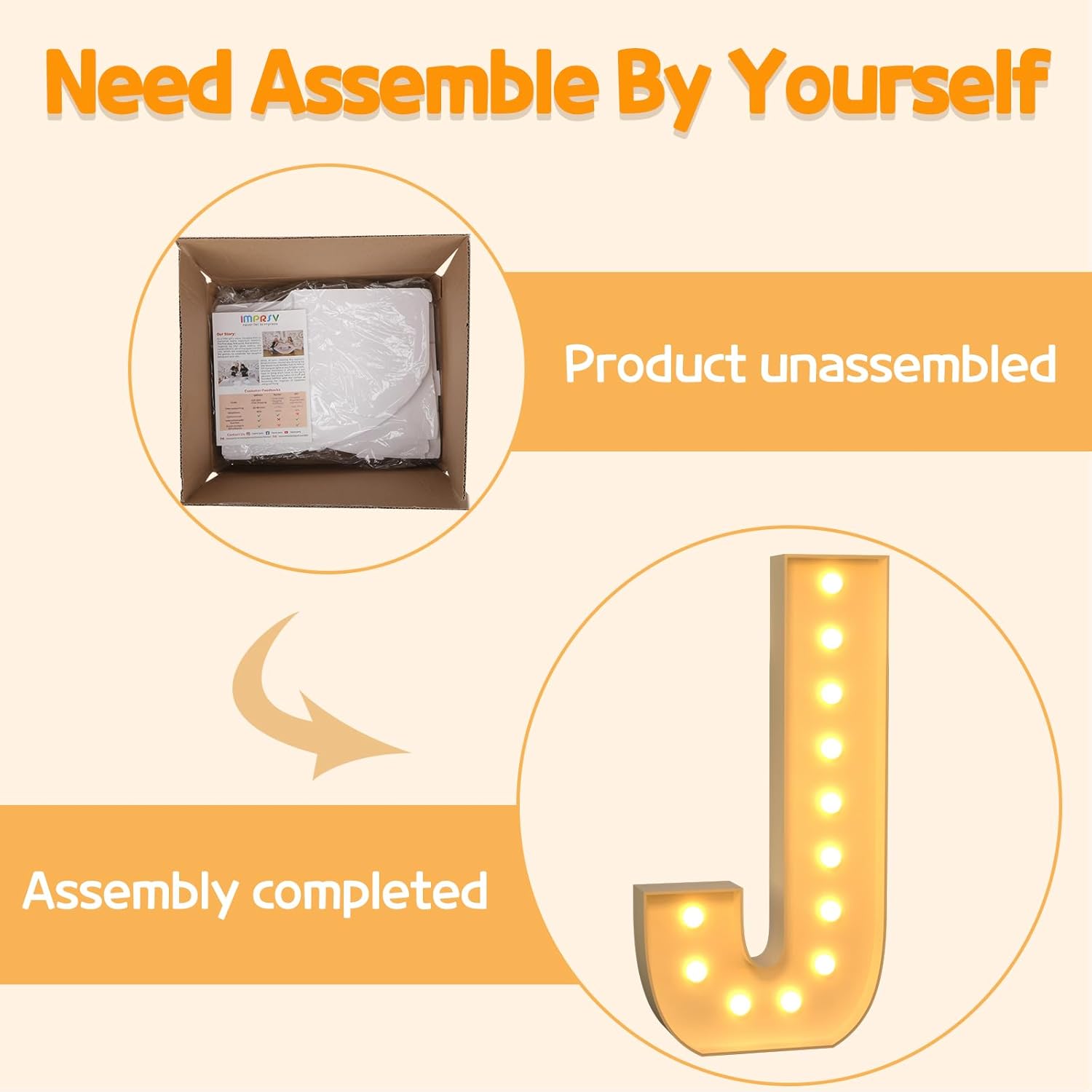• Assembly Required: Our large marquee letters is made from foam board and easy to assemble with our splicing mode. Just follow the numbered instructions to align and insert the bottom plate, and reinforce it with a hot glue gun. Then, you're done!