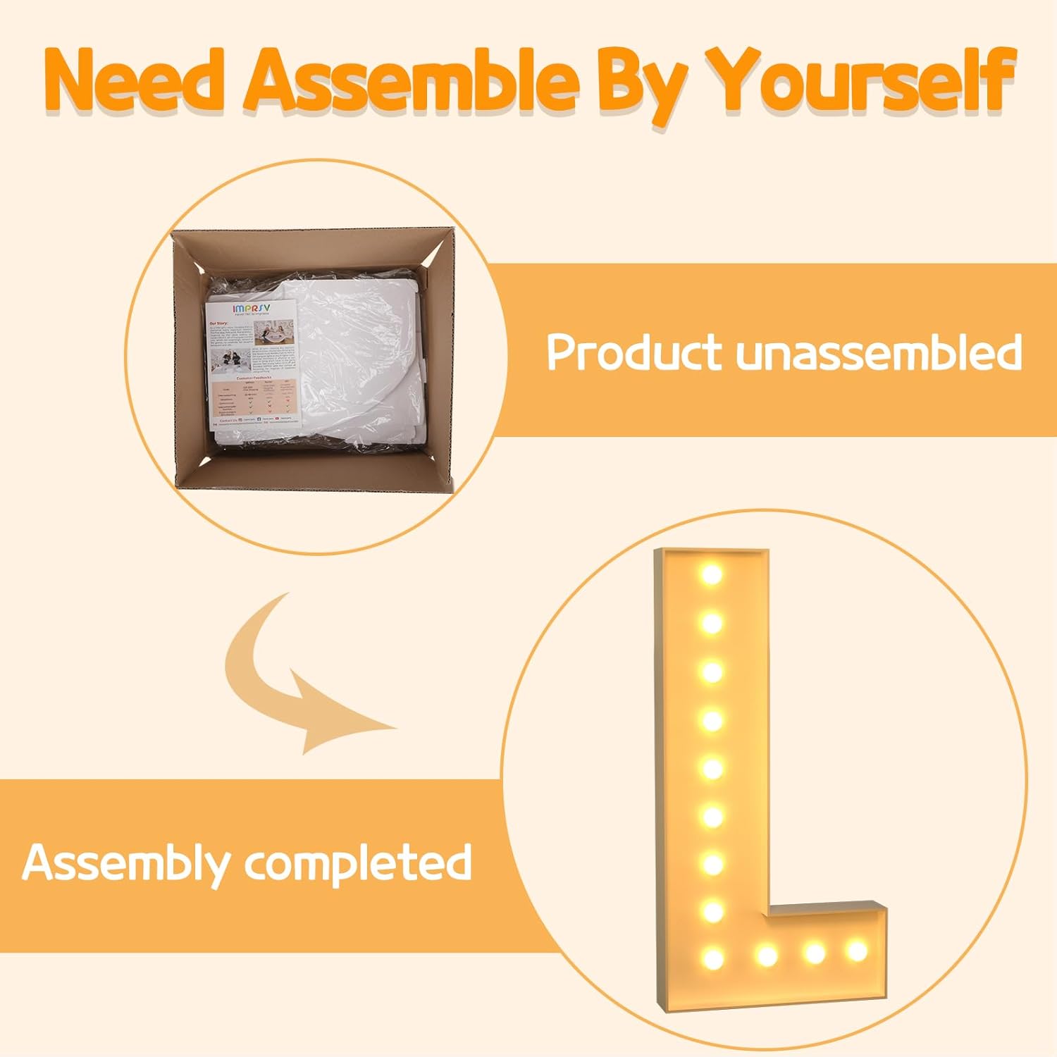 • Assembly Required: Our large marquee letters is made from foam board and easy to assemble with our splicing mode. Just follow the numbered instructions to align and insert the bottom plate, and reinforce it with a hot glue gun. Then, you're done!