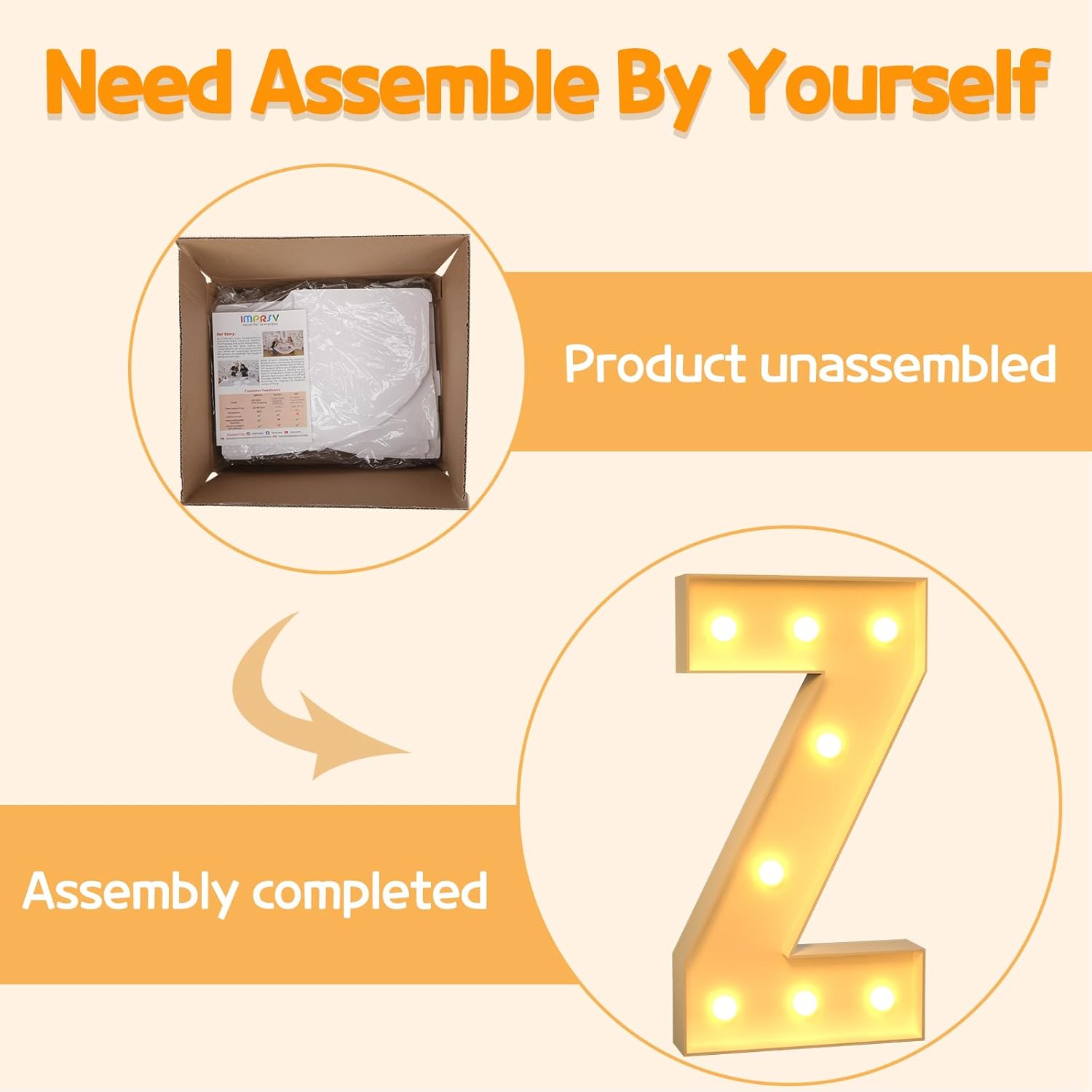 • Assembly Required: Our large marquee letters is made from foam board and easy to assemble with our splicing mode. Just follow the numbered instructions to align and insert the bottom plate, and reinforce it with a hot glue gun. Then, you're done!