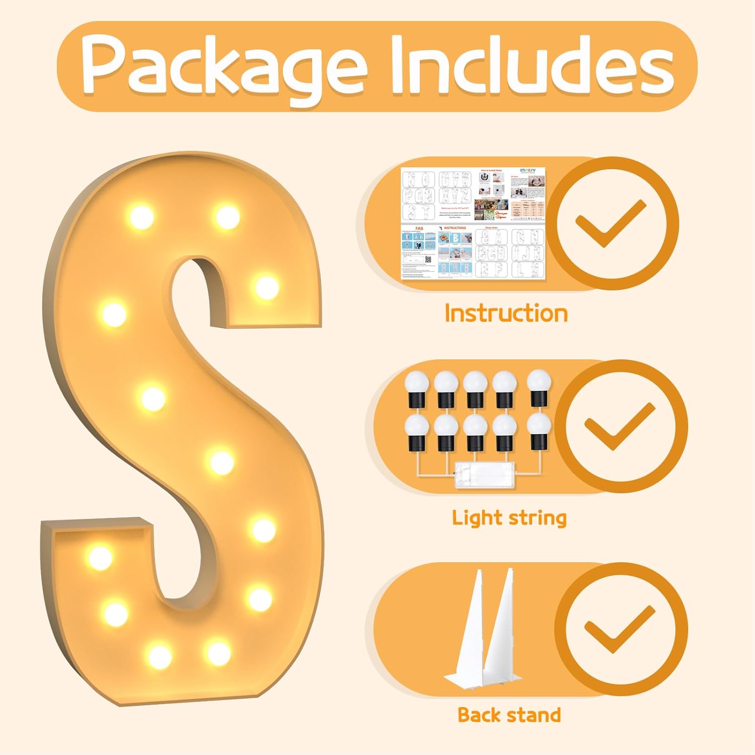 • Equipped with Light String: Marquee light up letters include matching light strings, so you can say goodbye to the annoyances of incompatible light strings and enjoy an effortless setup.