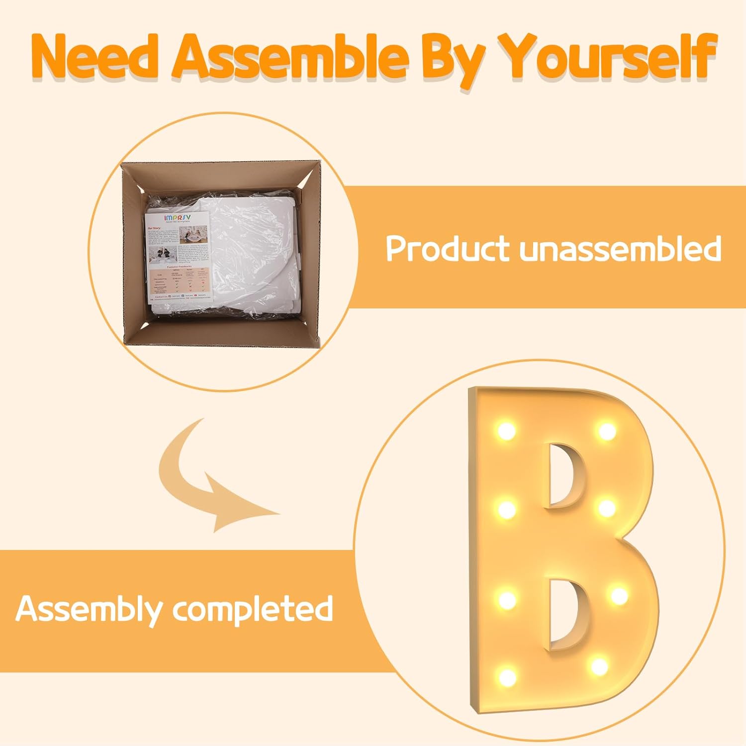 • Assembly Required: Our large marquee letters is made from foam board and easy to assemble with our splicing mode. Just follow the numbered instructions to align and insert the bottom plate, and reinforce it with a hot glue gun. Then, you're done!