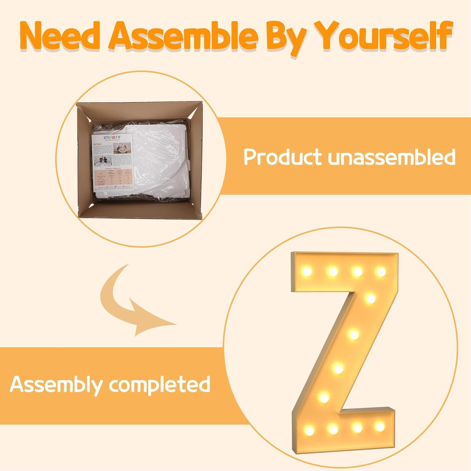 • Assembly Required: Our large marquee letters is made from foam board and easy to assemble with our splicing mode. Just follow the numbered instructions to align and insert the bottom plate, and reinforce it with a hot glue gun. Then, you're done!