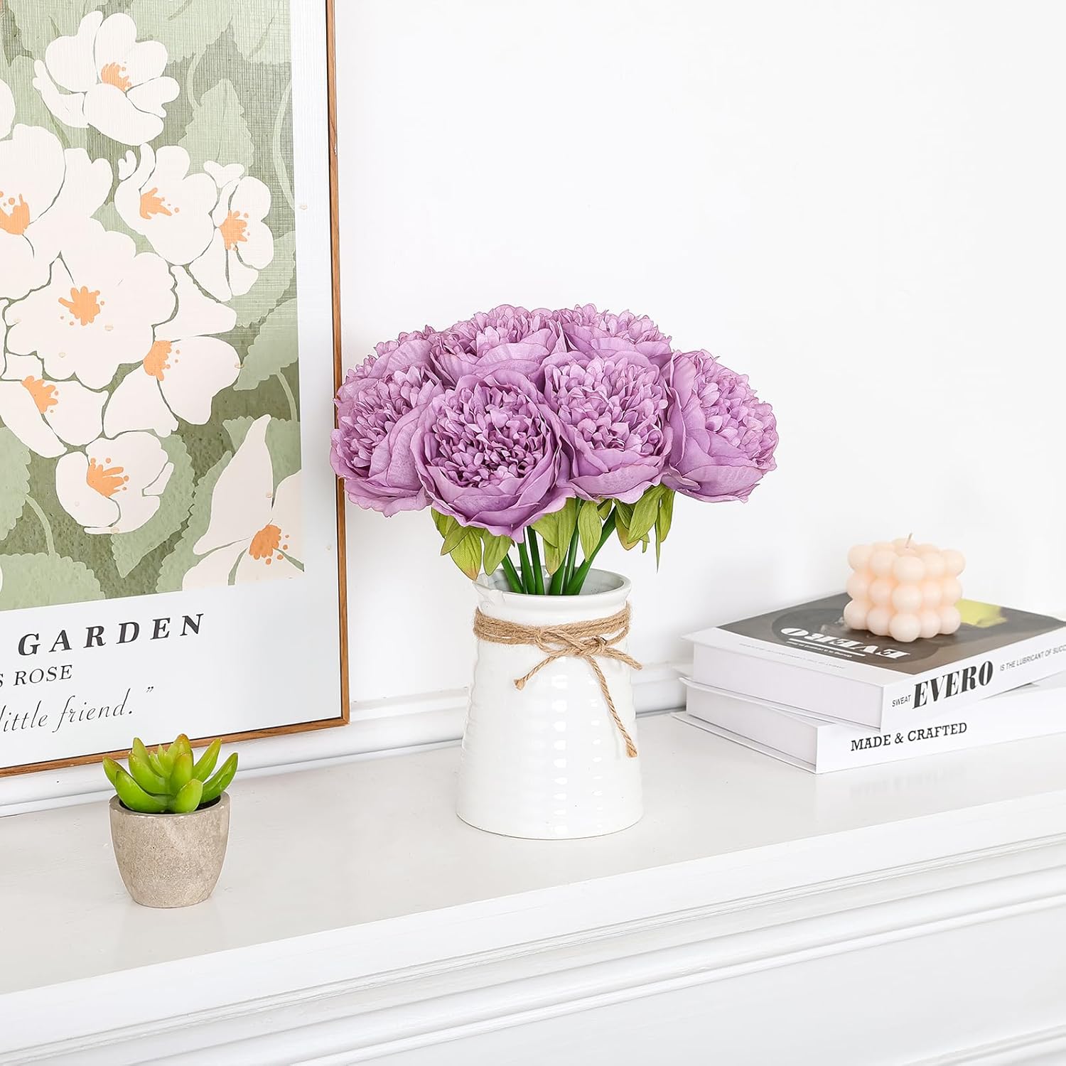 U'Artlines Artificial Peony Silk Flower with Stems 10pcs Real Look Vintage Peonies for Home Wedding Decoration (Purple)