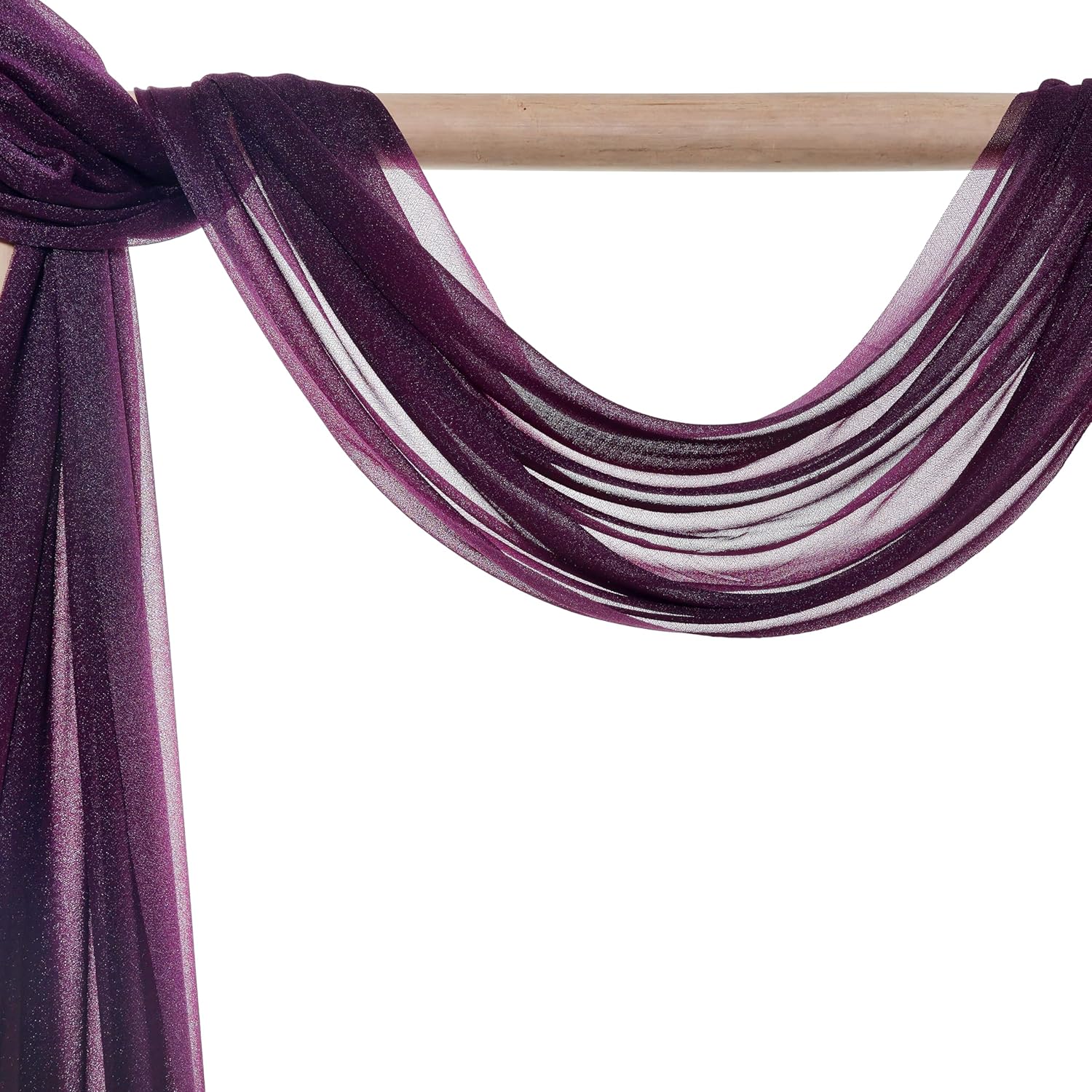 VDS Pack of 1 Panel (30 Inch X 20 Feet) Wedding Arch Draping Fabric Sheer Chiffon Fabric Drapery for Wedding Ceremony Reception Swag Backdrop Canopy Chuppah ARBO Altars Decoration (Eggplant)