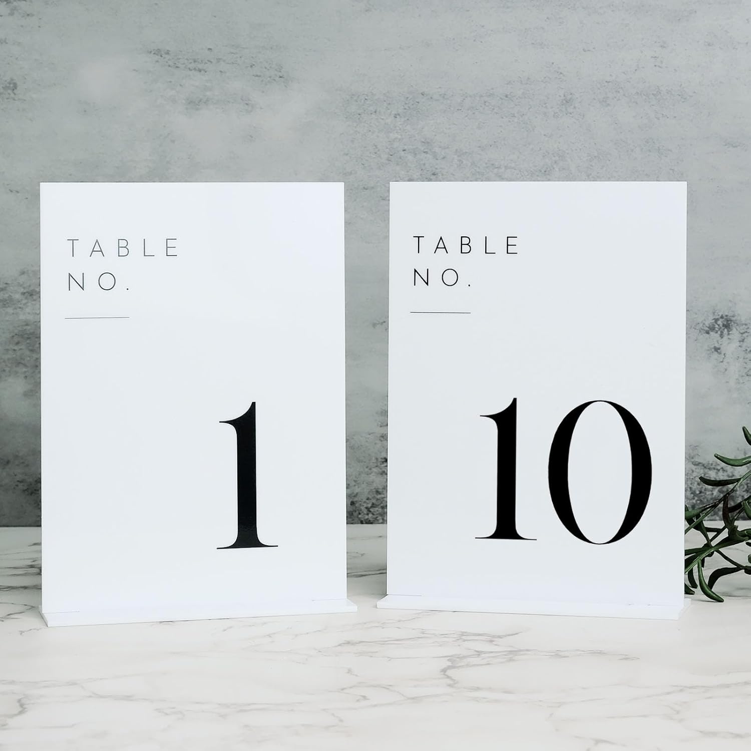 • PREMIUM QUALITY: These white acrylic table numbers with holders are made from high quality white acrylic panels and then printed with white letters in a simple arch design that won't go out of style and will last a long time.