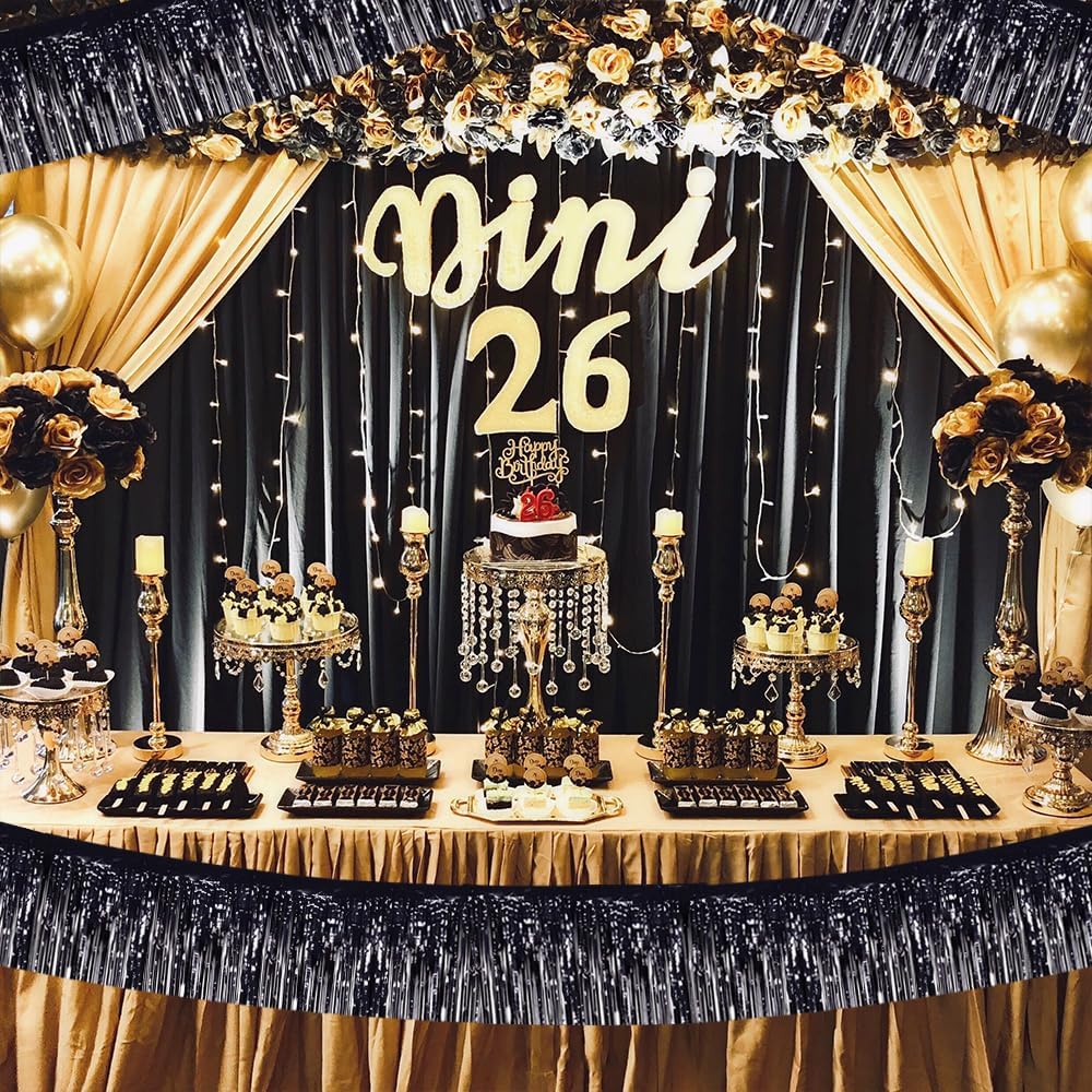 BEISHIDA 3 Packs Metallic Foil Fringe Garland Black Wall Hanging Tinsel Fringe Banners for Car Floats Halloween Bridal Shower Wedding Birthday Easter Graduation Holiday Party Decoration(30 Feet)