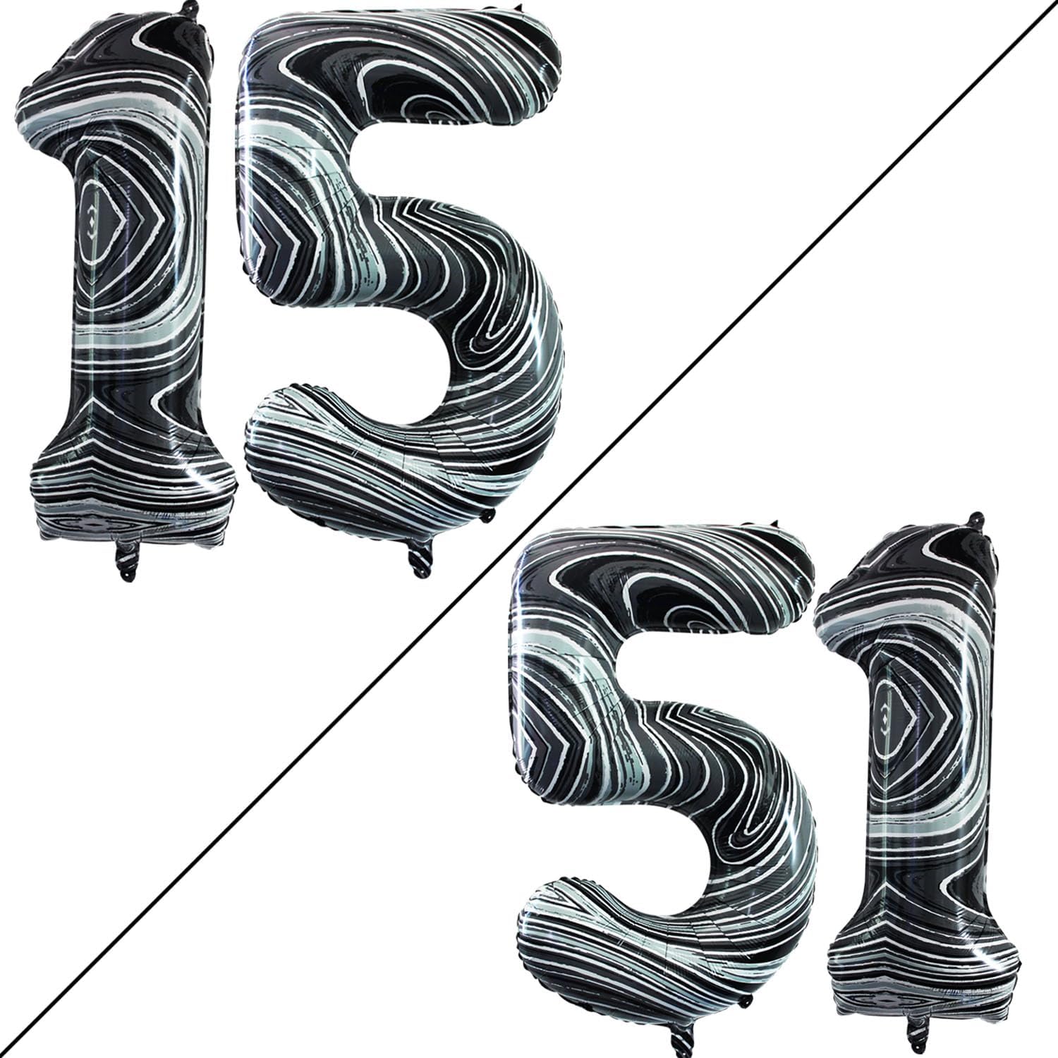 GOER Number 15 Balloons for 15th Birthday Sweet 15 Party Decorations,42 Inch Jumbo Foil Helium 51 Balloons for 51st Birthday Party Decoration (Marble Black)