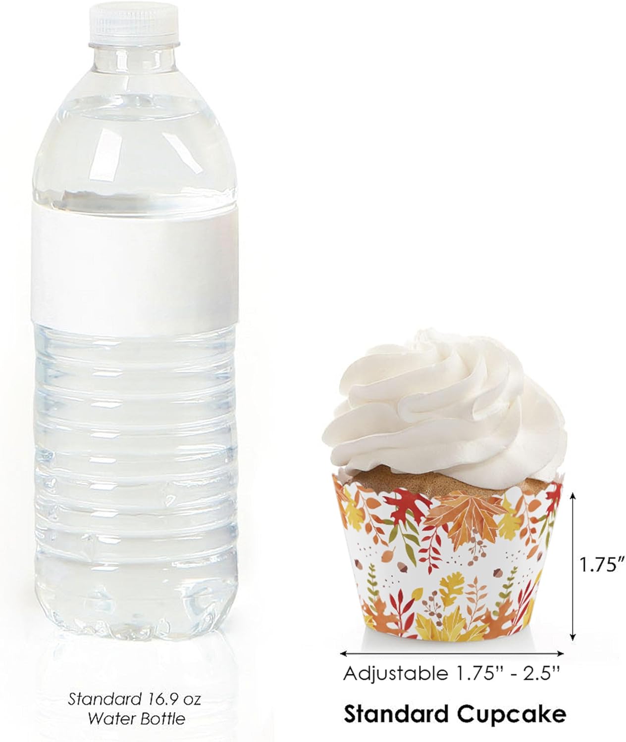 • SIZE: Fall Foliage cupcake wrappers are adjustable up to 2" wide in diameter. Decorative cupcake wrappers will fit standard and medium sized cupcakes, easily hiding the baking wrapper and creating a pretty party treat.