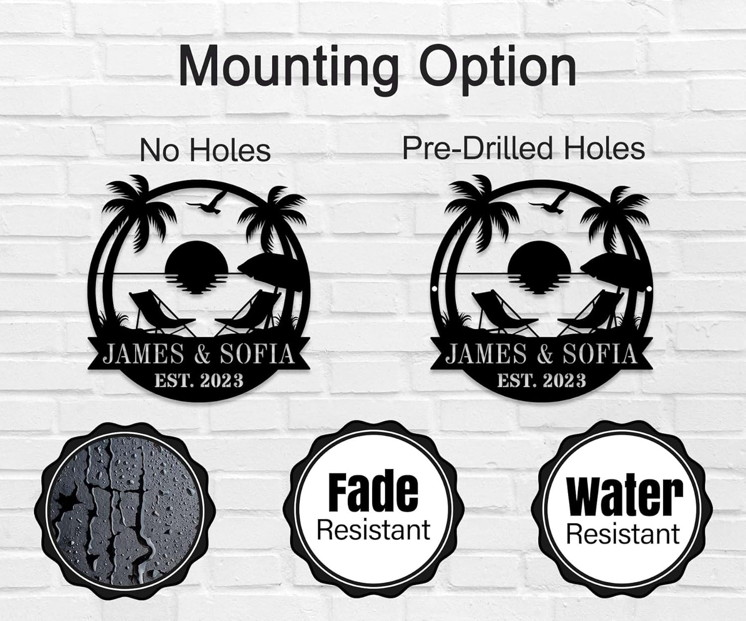 • Personalized Beach Metal Monogram Sign: Showcase your unique style with a custom last name sign that adds a beachy touch to your coastal house decor.