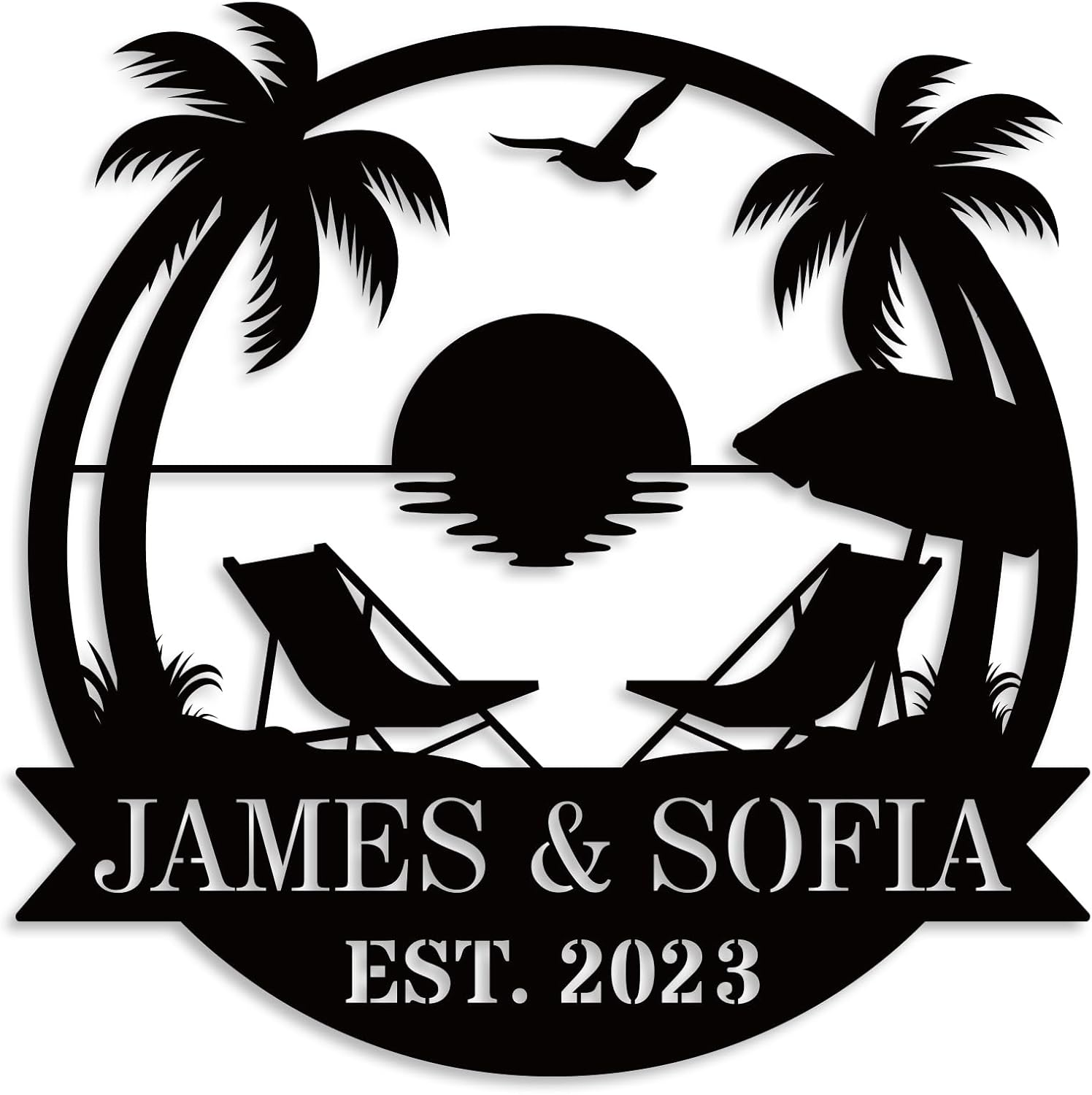Personalized Beach Metal Monogram Sign, Custom Palm Trees Sign, Outdoor Metal Family Name Sign, Custom Last Name Sign, Beach Coastal House Decor