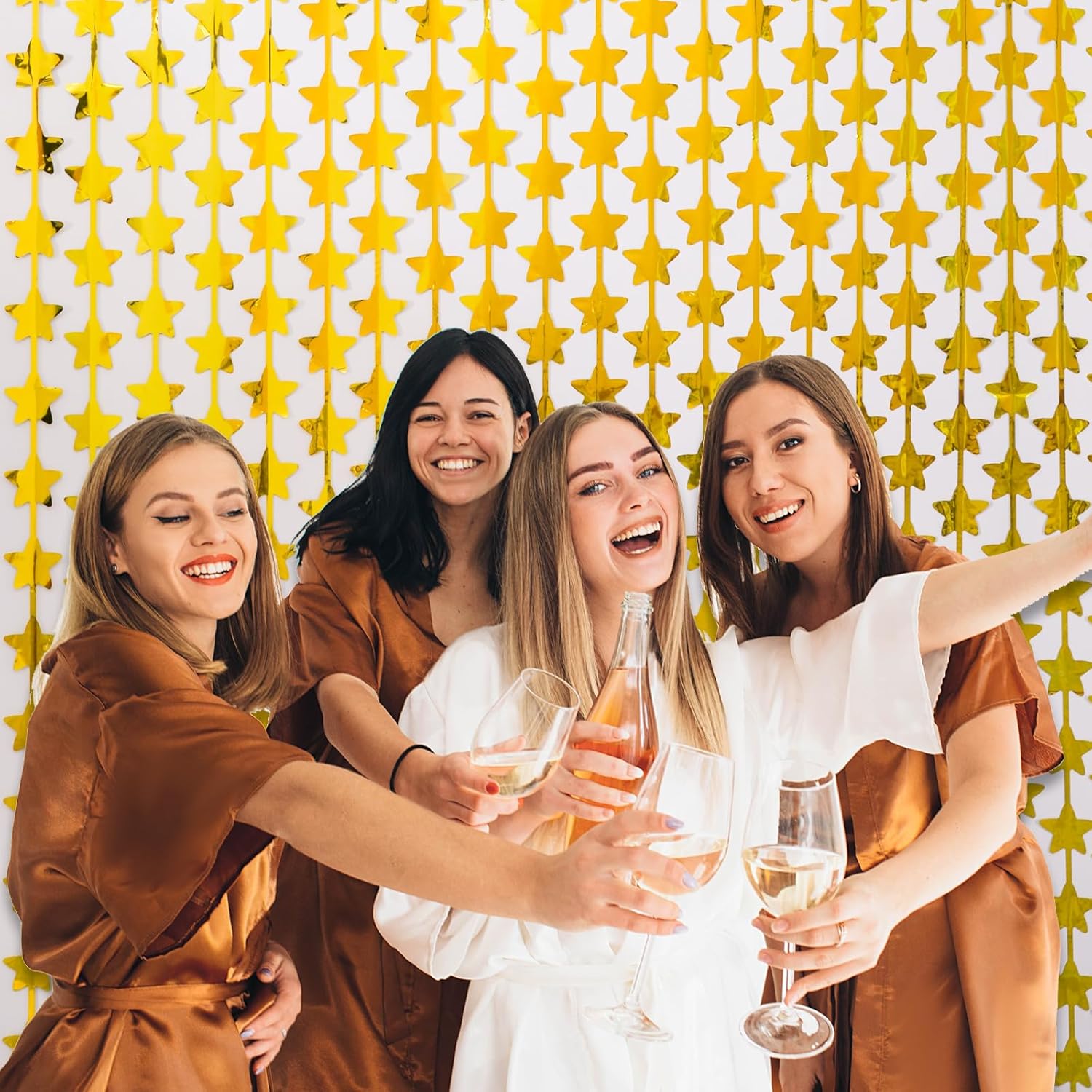 • ⭐【TINSEL MATERIAL】: Our golden stars photo booth props is made of tinsel with shiny surface, lightweight and durable metallic fringe curtains. High quality fringe curtains, high toughness, unbreakable, can be used for a long time.