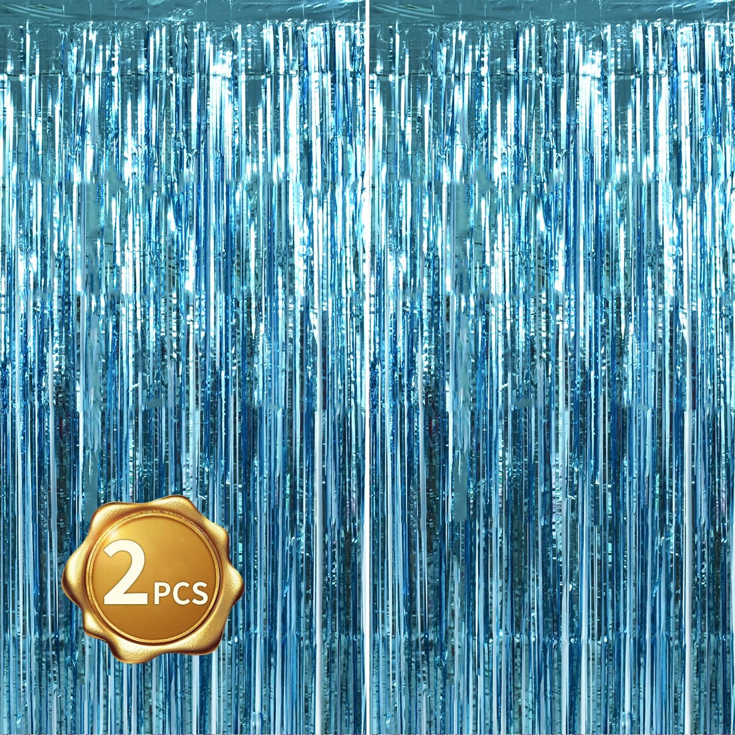 BEISHIDA 2 Pcs Light Blue Door Streamers Tinsel Curtain Party Backdrop Fringe Foil Wall Background for Birthday Halloween Christmas Wedding Boys Babyshower Party Decoration(3.28 ft x 6.56 ft)