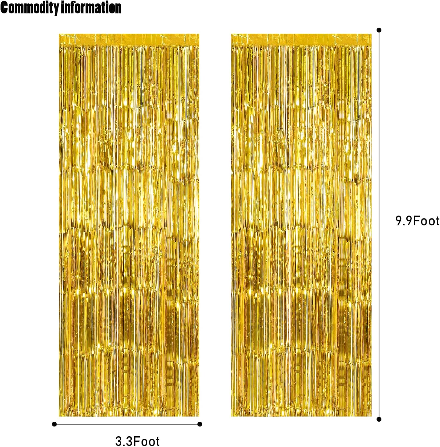 • 🎉PACKAGE INCLUDED : 2 pack of gold foil fringe curtains, the size of each tinsel curtain is 3.3 ft x 8.2 ft, enough length for hanging on a door or covering a wall fully, suitable for any parties.