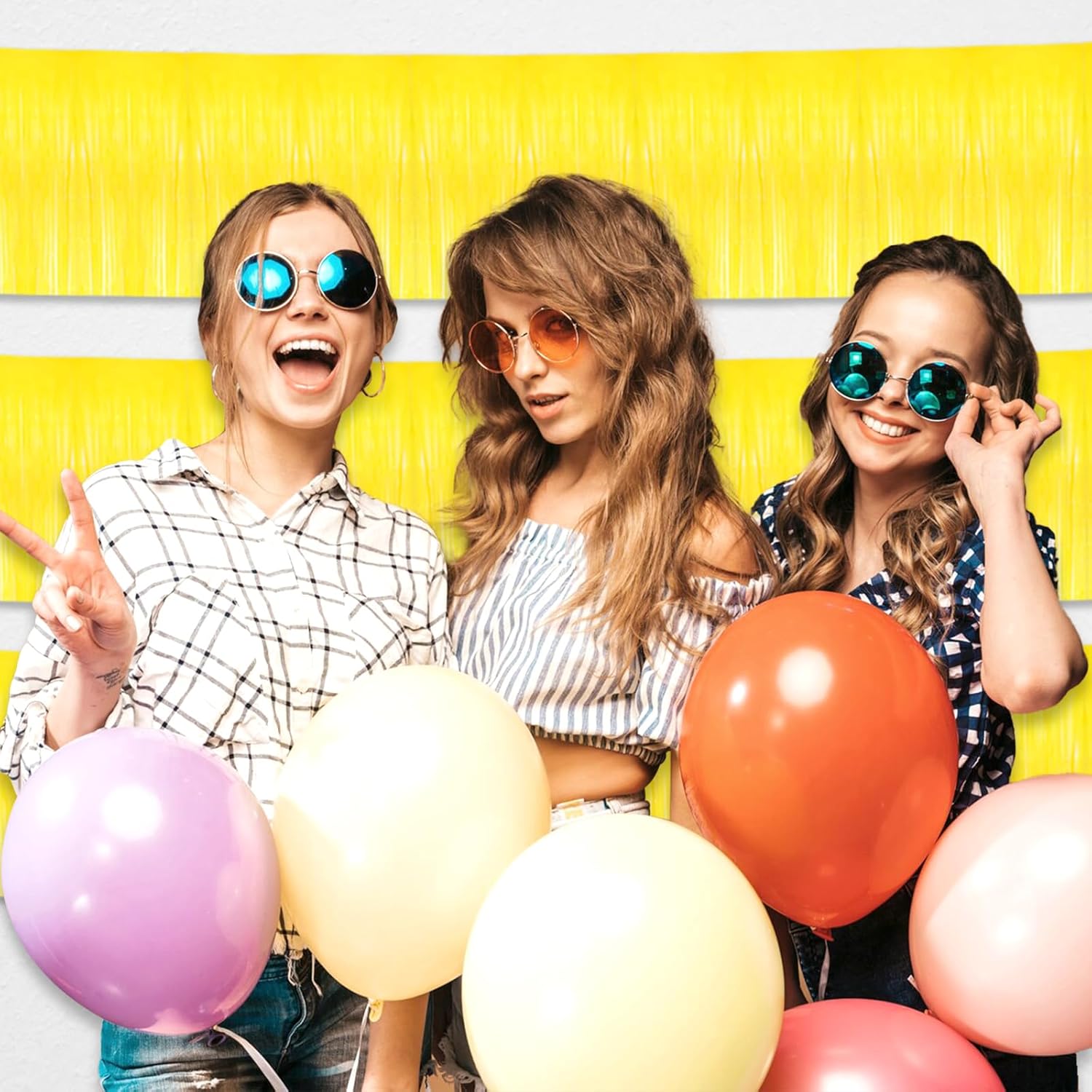 4 Pack 10 Feet Yellow Foil Fringe Garland Metallic Tinsel Streamers Banner Wall Hanging Curtain Backdrop for Parade Floats, Wedding, Graduate, Mother's Day, Birthday Party Decoration