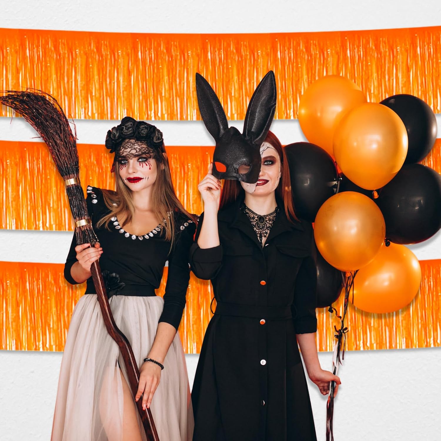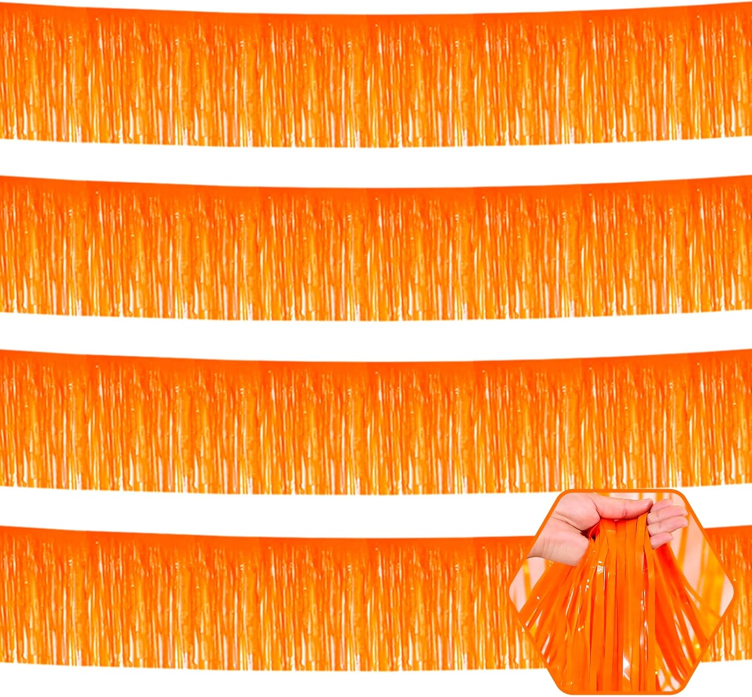4 Pack 10 Feet Macaron Orange Foil Fringe Garland Metallic Tinsel Streamers Banner Wall Hanging Curtain Backdrop for Parade Floats, Wedding, Graduate, Mother's Day, Birthday Party Decoration