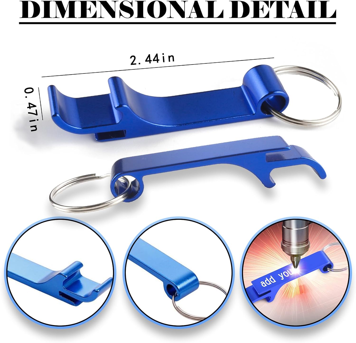 • Personalized bottle opener: Laser engraving bottle opener keychain can be personalized with names, logos, or unique patterns, with white organza bag, great for wedding favors, anniversaries, birthday favors,christmas,banquet, graduation, housewarming, etc.