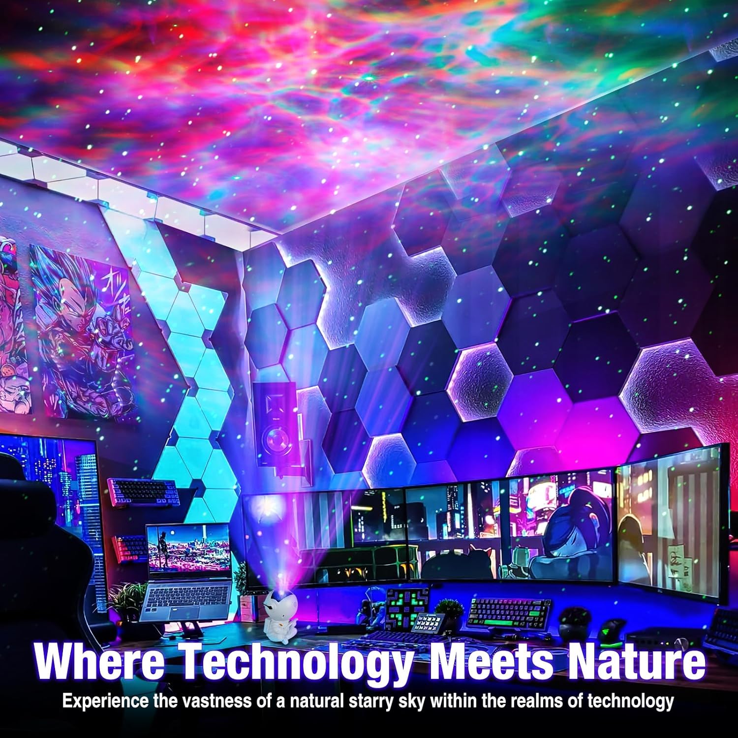 • 2. Galaxy & Nebula Effects – Adjustable Projection Transform your room into a colorful galaxy with nebula clouds and stars. The astronaut’s head is adjustable, so you can project lights on ceilings or walls from different angles. Perfect for bedrooms, nurseries, or music corners.