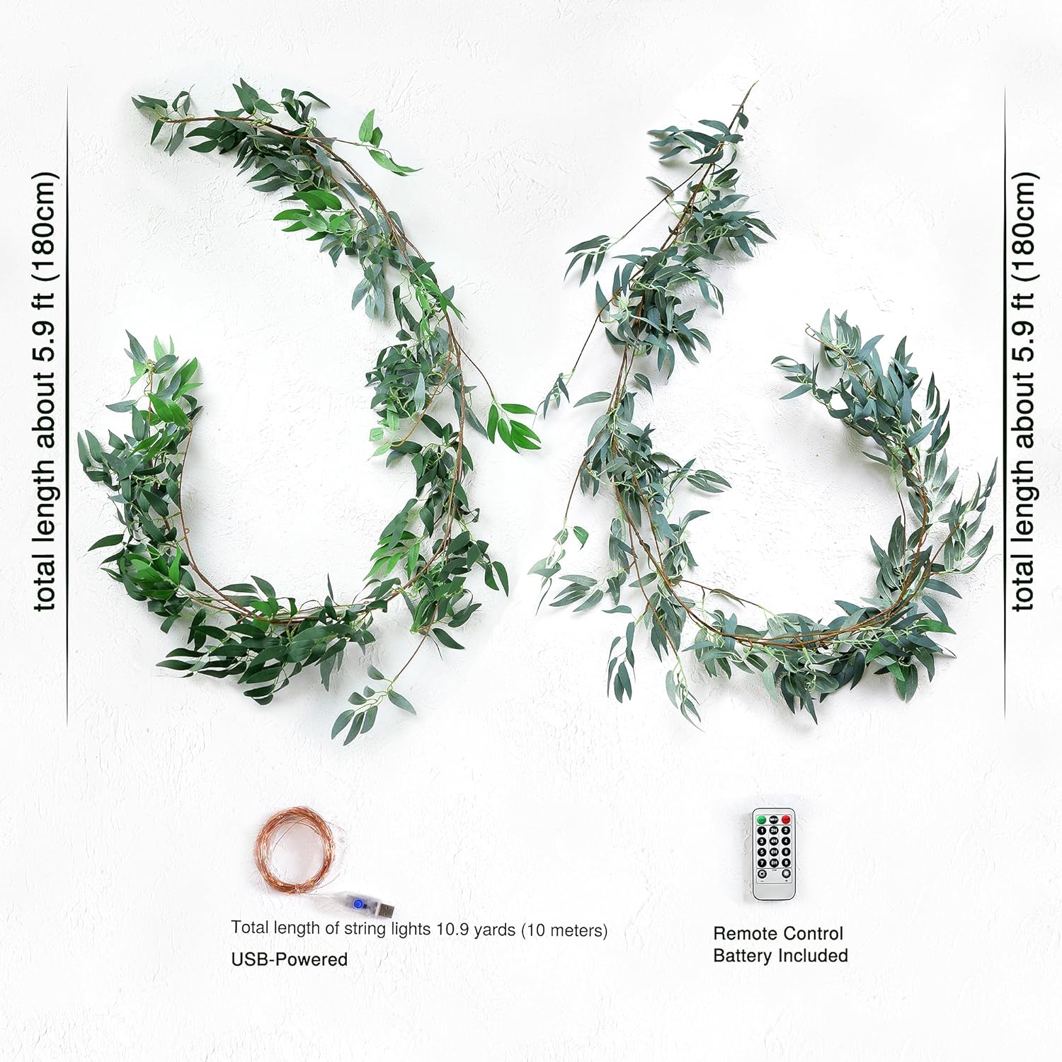 FiveSeasonStuff 2 Mix Rustic Willow Garlands, Bendable Artificial Greenery Vine Leaves for Wedding Home Decoration with 33 Feet String Lights