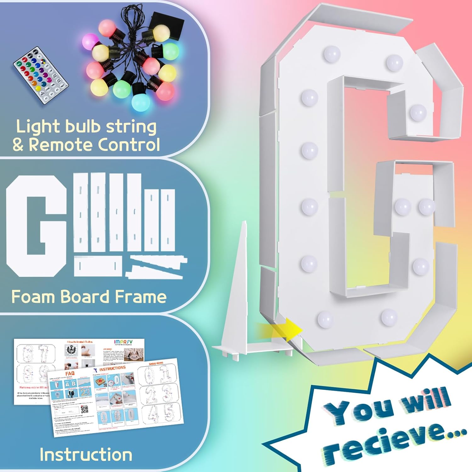 imprsv 4FT Colorful Marquee Light Up Letters G, 18 Colors Large Light up Letters Alphabet Sign with Remote, Large Marry Me Sign, Birthday Party Decorations Baby Shower Anniversary Wedding Decoration