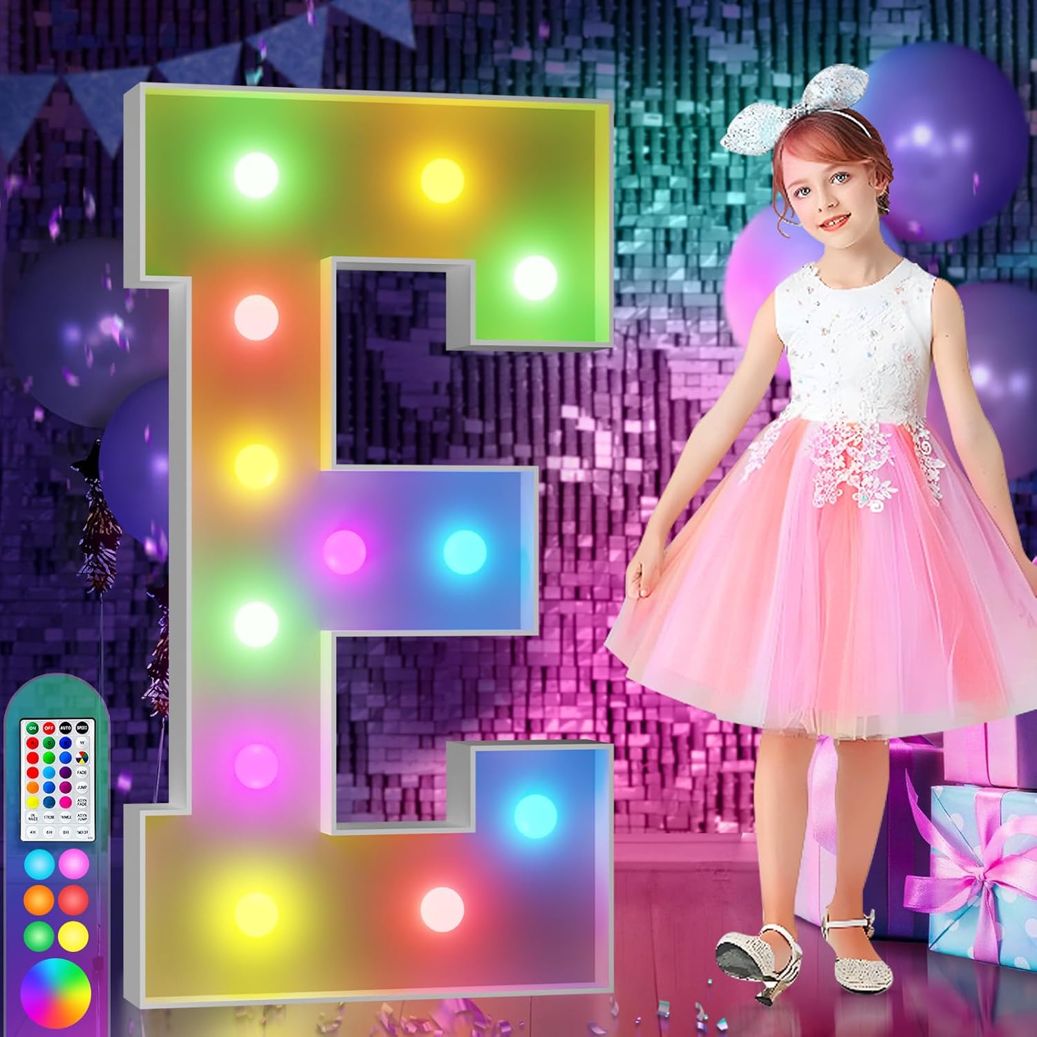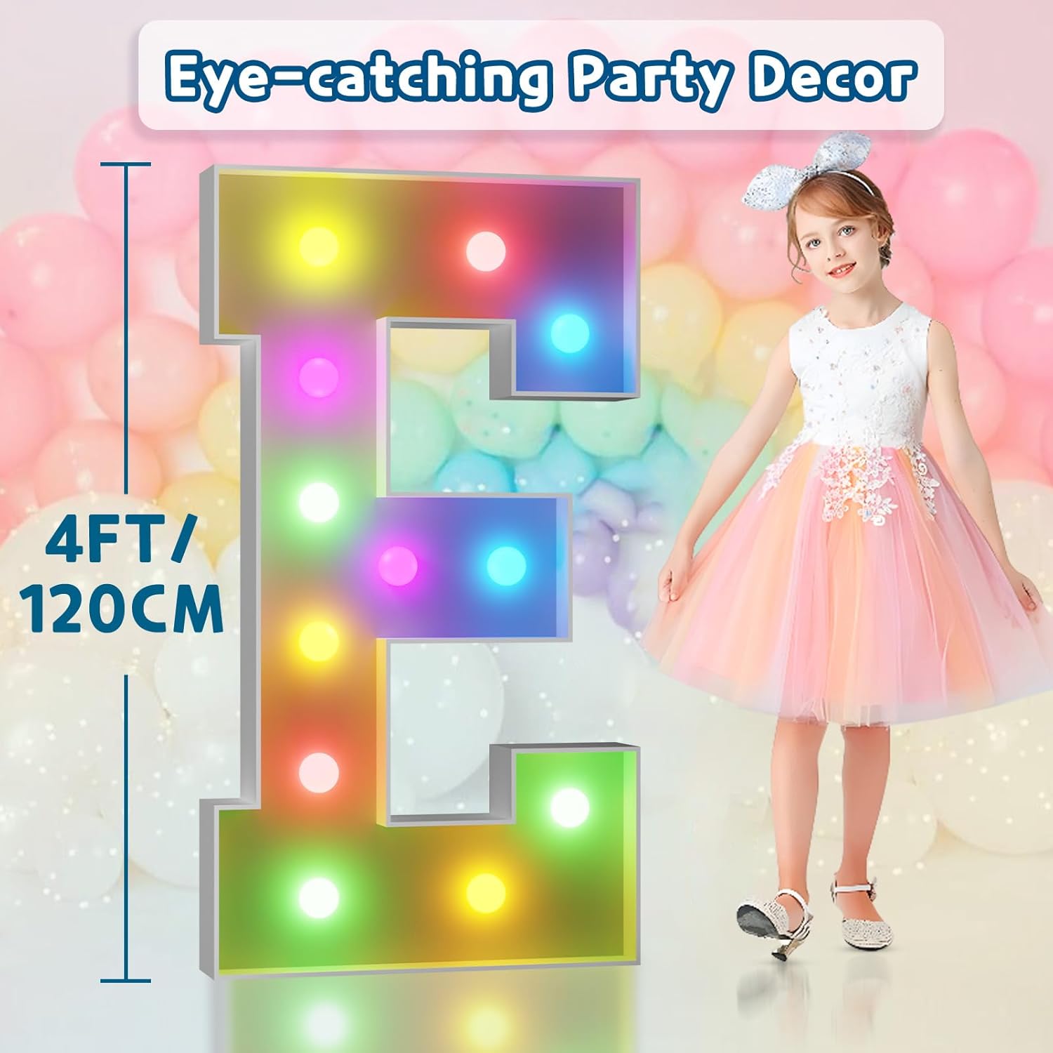 imprsv 4FT Colorful Marquee Light Up Letters E, 18 Colors Light Up Letters Alphabet Sign with Remote, Marry Me Sign, Large Letters for Birthday Engagement Anniversary Wedding Party Decor
