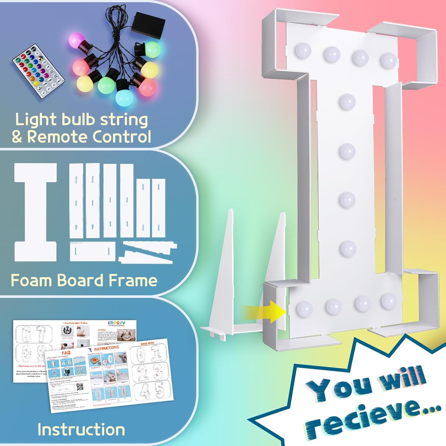 imprsv 4FT Colorful Marquee Light Up Letters I, 18 Colors Large Light up Letters Alphabet Sign with Remote, Large Marry Me Sign, Birthday Party Decorations Baby Shower Anniversary Wedding Decoration