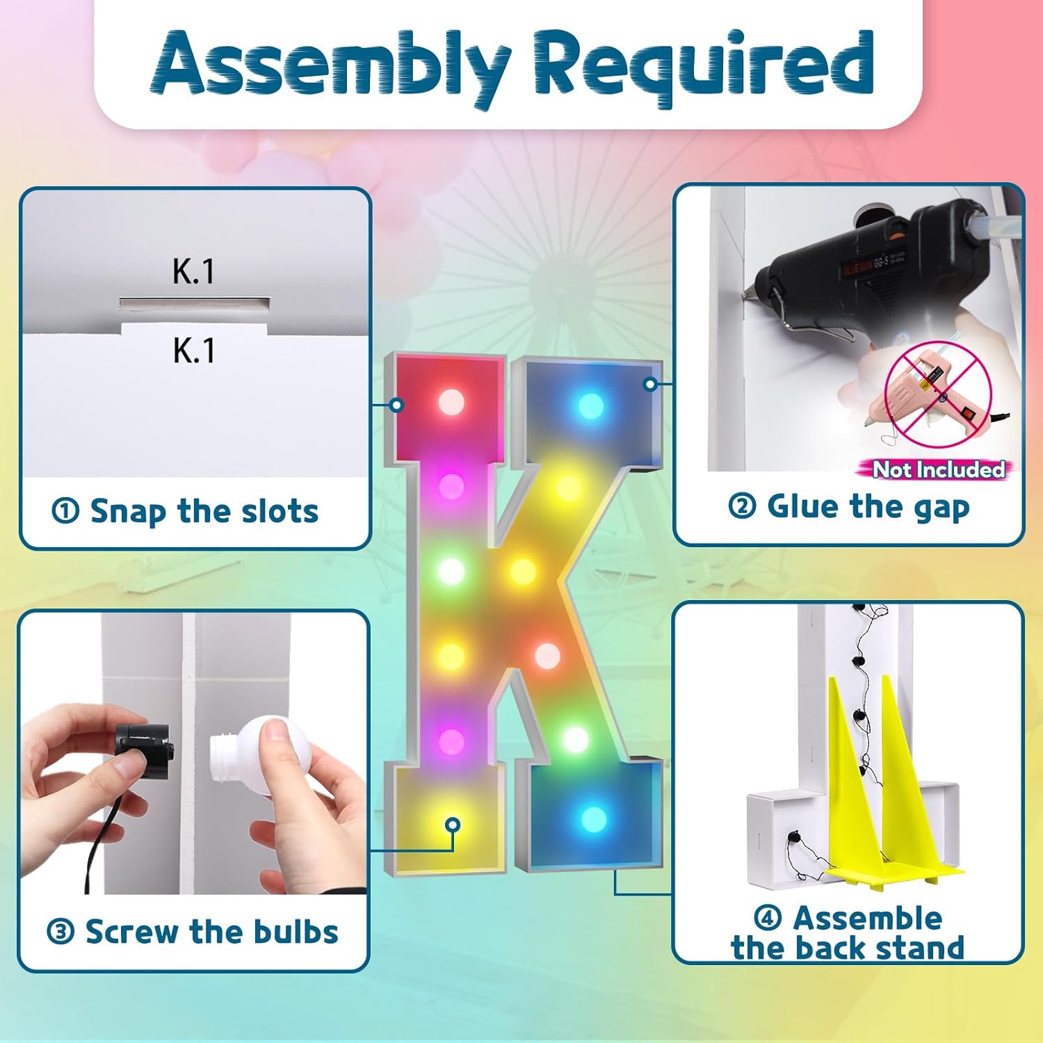 imprsv 4FT Colorful Marquee Light Up Letters K, 18 Colors Large Light up Letters Alphabet Sign with Remote, Large Marry Me Sign, Birthday Party Decorations Baby Shower Anniversary Wedding Decoration