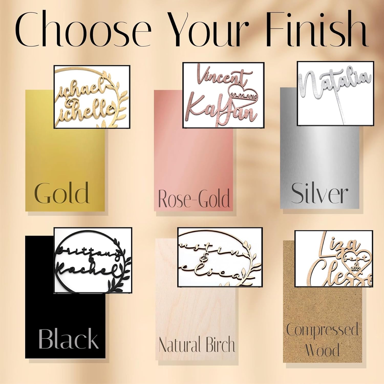 • Make your cake truly yours with a custom name cake topper, allowing you to showcase your names in a stylish way that guests will admire and remember.