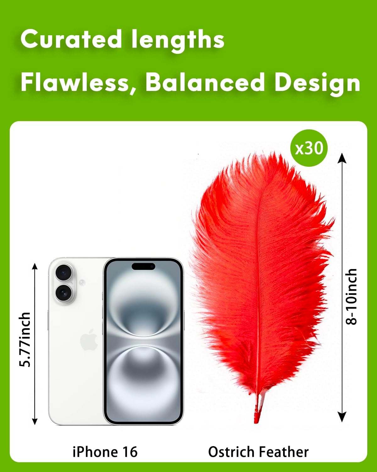 • Package:Each pack has 30pcs natural ostrich feathers.Our feathers are carefully selected by the workers, so each one is plump with good quality warranty.