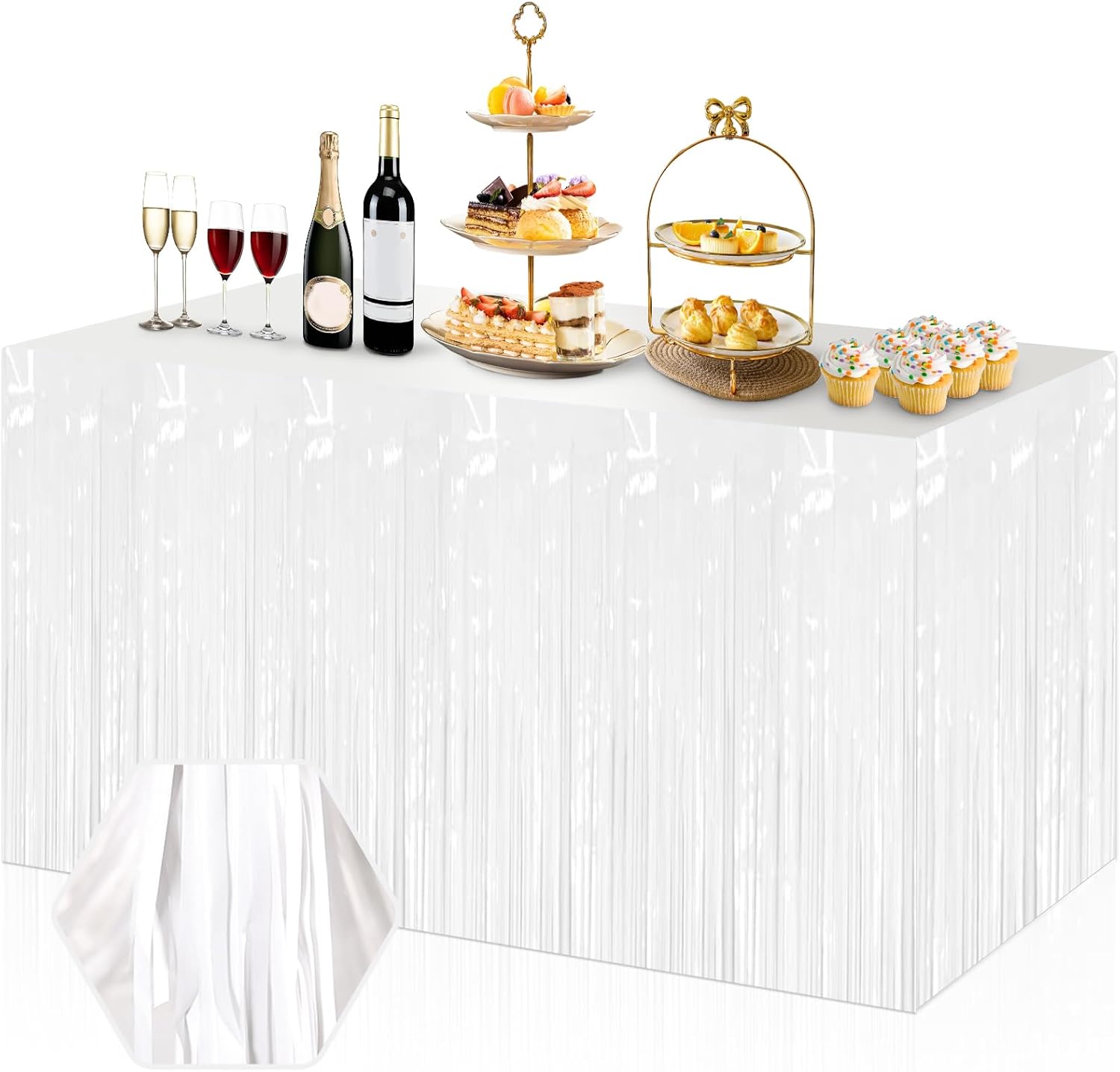 3 Pack 29x108 Inch Macaron White Foil Fringe Table Skirts Metallic Banner for Tinsel Streamer Garland Backdrop for Parade Floats Wedding Thanksgiving Birthday Christmas Halloween Party Decoration