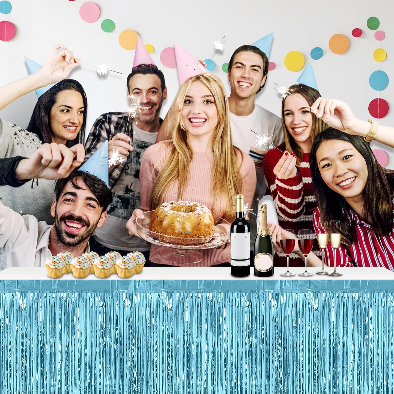 3 Pack 29x108 Inch Light Blue Foil Fringe Table Skirts Metallic Banner for Tinsel Streamer Garland Backdrop for Parade Floats Wedding Thanksgiving Birthday Christmas Halloween Party Decoration