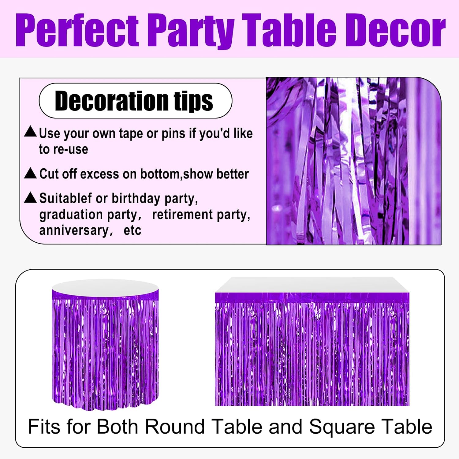 3 Pack 29x108 Inch Purple Foil Fringe Table Skirts Metallic Banner for Tinsel Streamer Garland Backdrop for Parade Floats Wedding Thanksgiving Birthday Christmas Halloween Party Decoration
