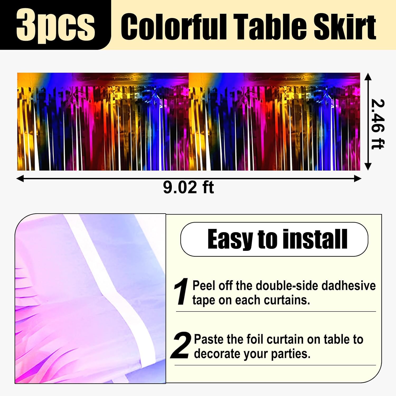 3 Pack 29x108 Inch Rainbow Foil Fringe Table Skirts Metallic Banner for Tinsel Streamer Garland Backdrop for Parade Floats Wedding Thanksgiving Birthday Christmas Halloween Party Decoration