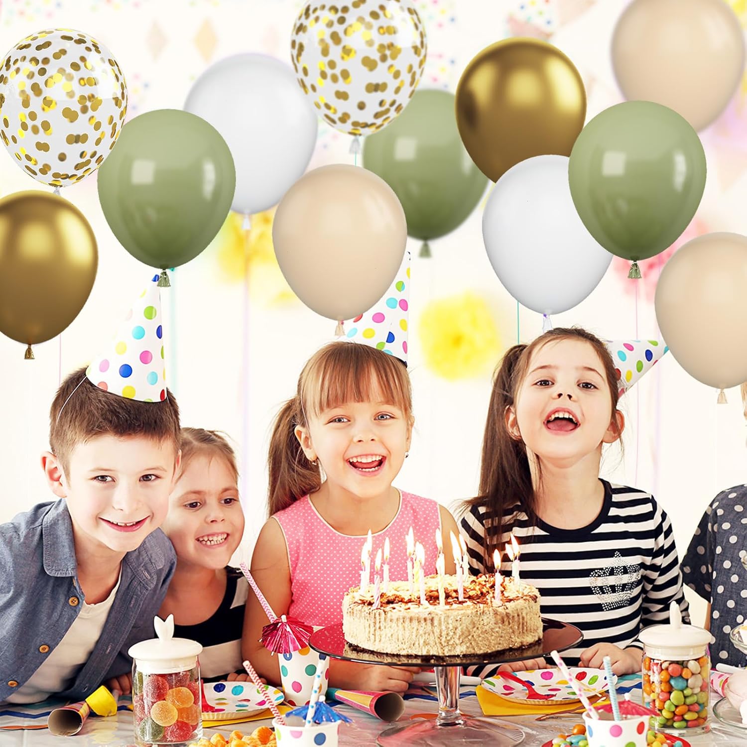Green & Gold Balloons - 60 Pcs Sage Green & Apricot, 12 Inch Metallic Gold Confetti, Retro Green Latex for Baby Shower, Wedding, Birthday, Jungle Animal Theme Party Decorations