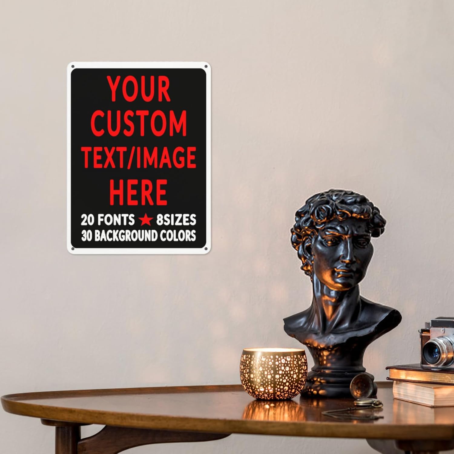 • CUSTOM YOUR OWN PERSONALIZED METAL SIGNS - By Upload Your Image Or Text Or Logo! Please Start By Clicking "Customize Now" Button And Click "Browse" Button To Upload Picture,Also Your Can Select The Color Background, Type Your Text You Can Choose The Typeface And Text Color.