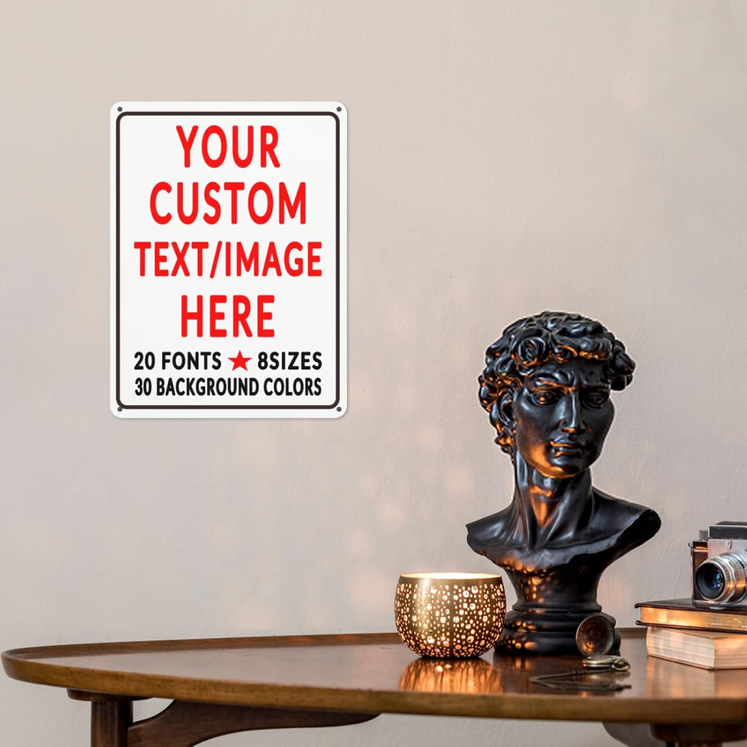• CUSTOM YOUR OWN PERSONALIZED METAL SIGNS - By Upload Your Image Or Text Or Logo! Please Start By Clicking "Customize Now" Button And Click "Browse" Button To Upload Picture,Also Your Can Select The Color Background, Type Your Text You Can Choose The Typeface And Text Color.
