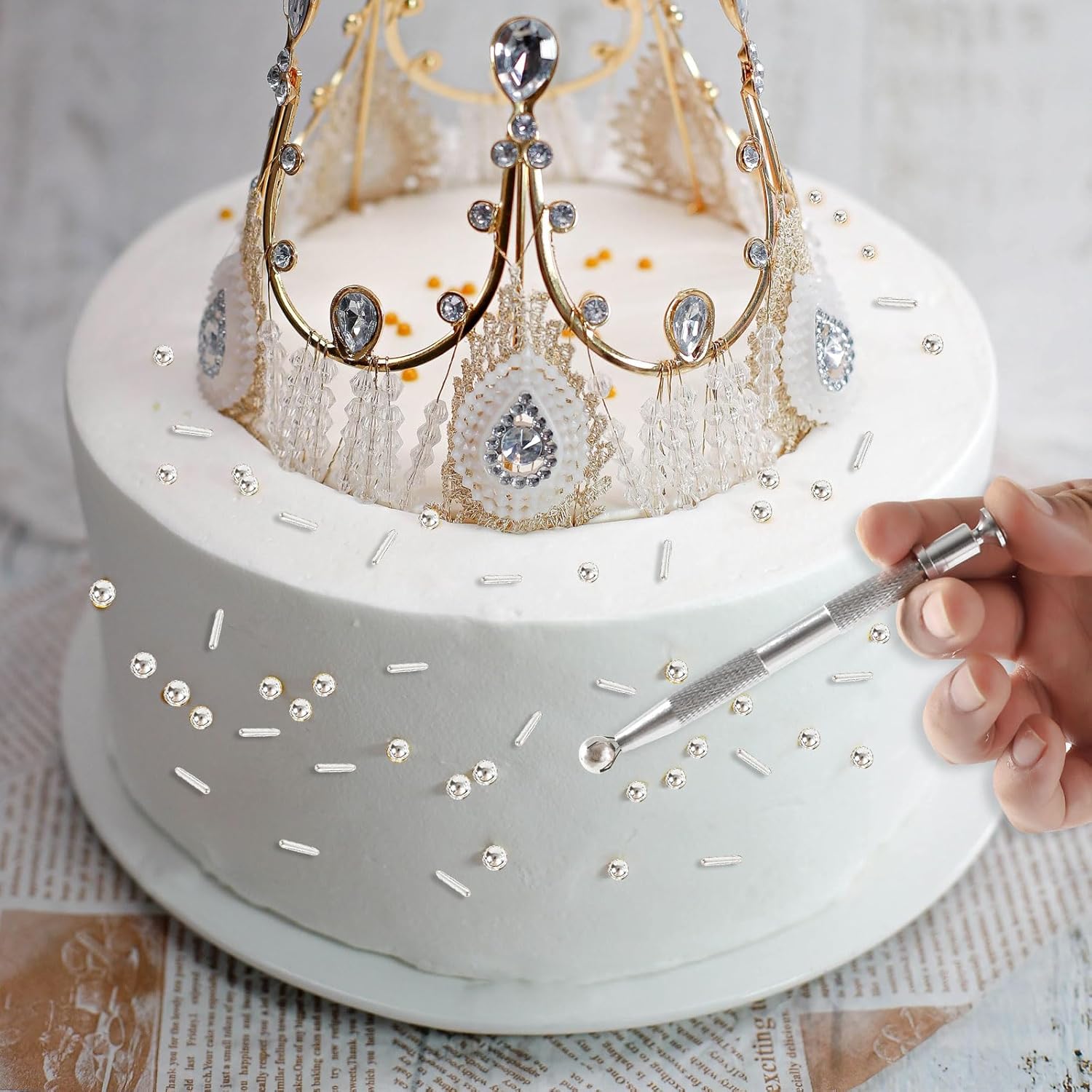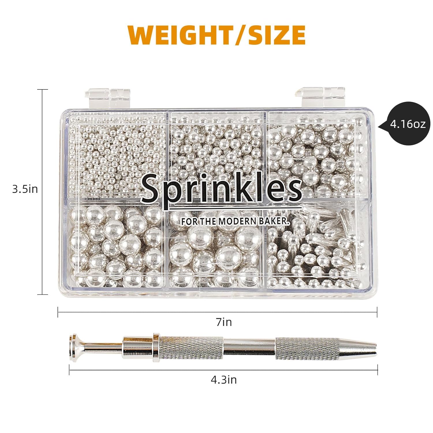 • 【Product List】: You will receive: 1 box of silver cake sprinkles, 118g/4.16oz. 1 piece of pearl grabber. Sufficient quantity, convenient and practical, it can meet your daily needs well.