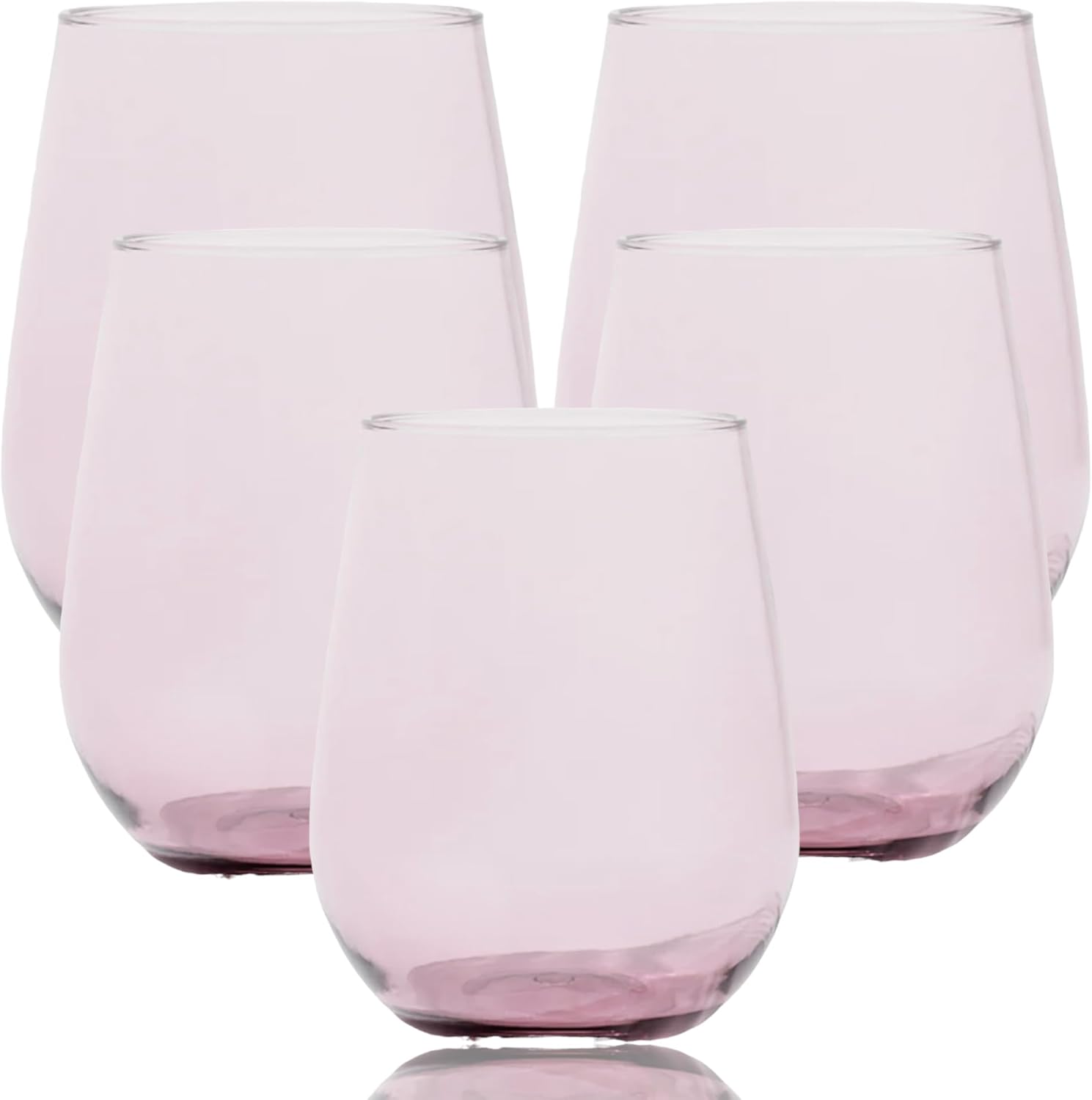 • Stylish & Durable Design – Crafted from crystal-clear, BPA-free plastic with a beautiful pink tint, these stemless wine glasses mimic the look of real glass while offering unbreakable strength for any event.