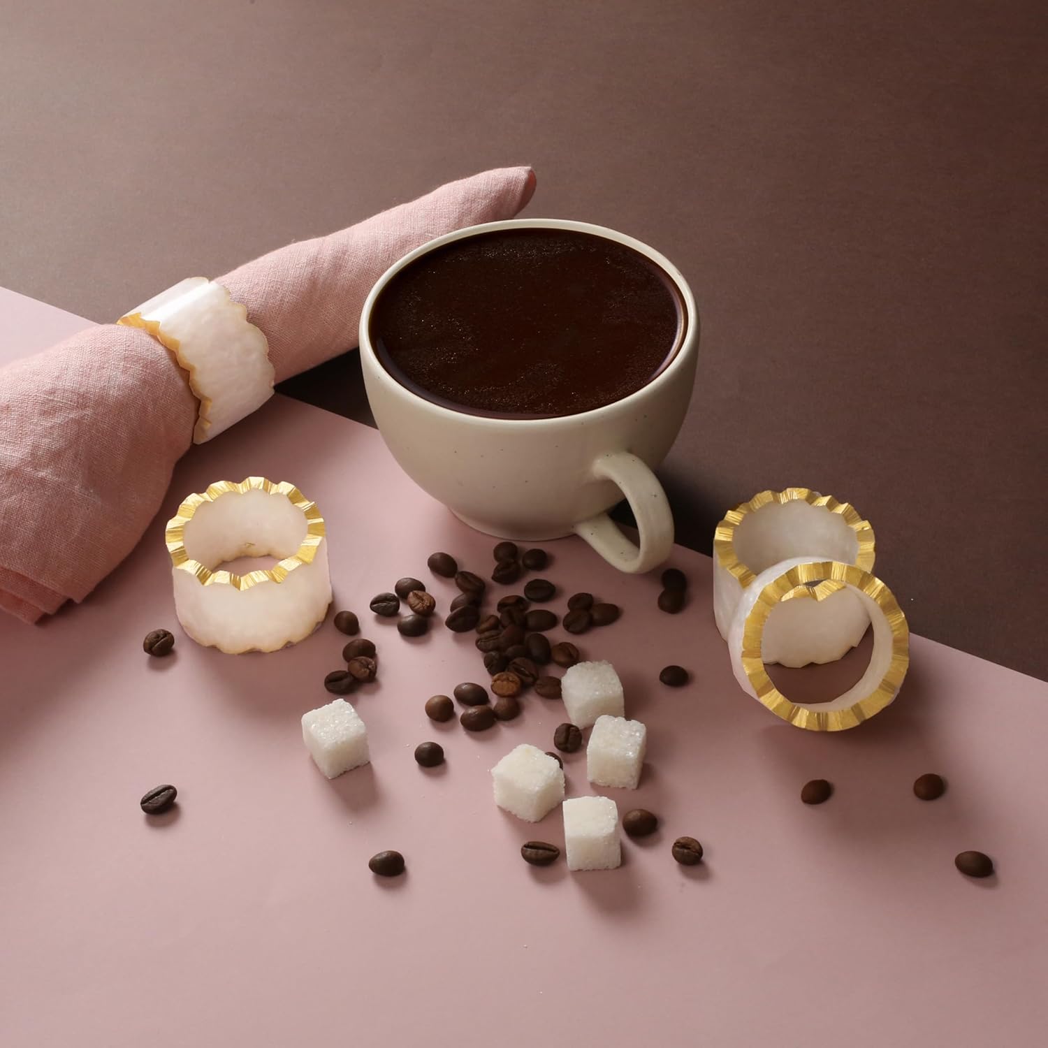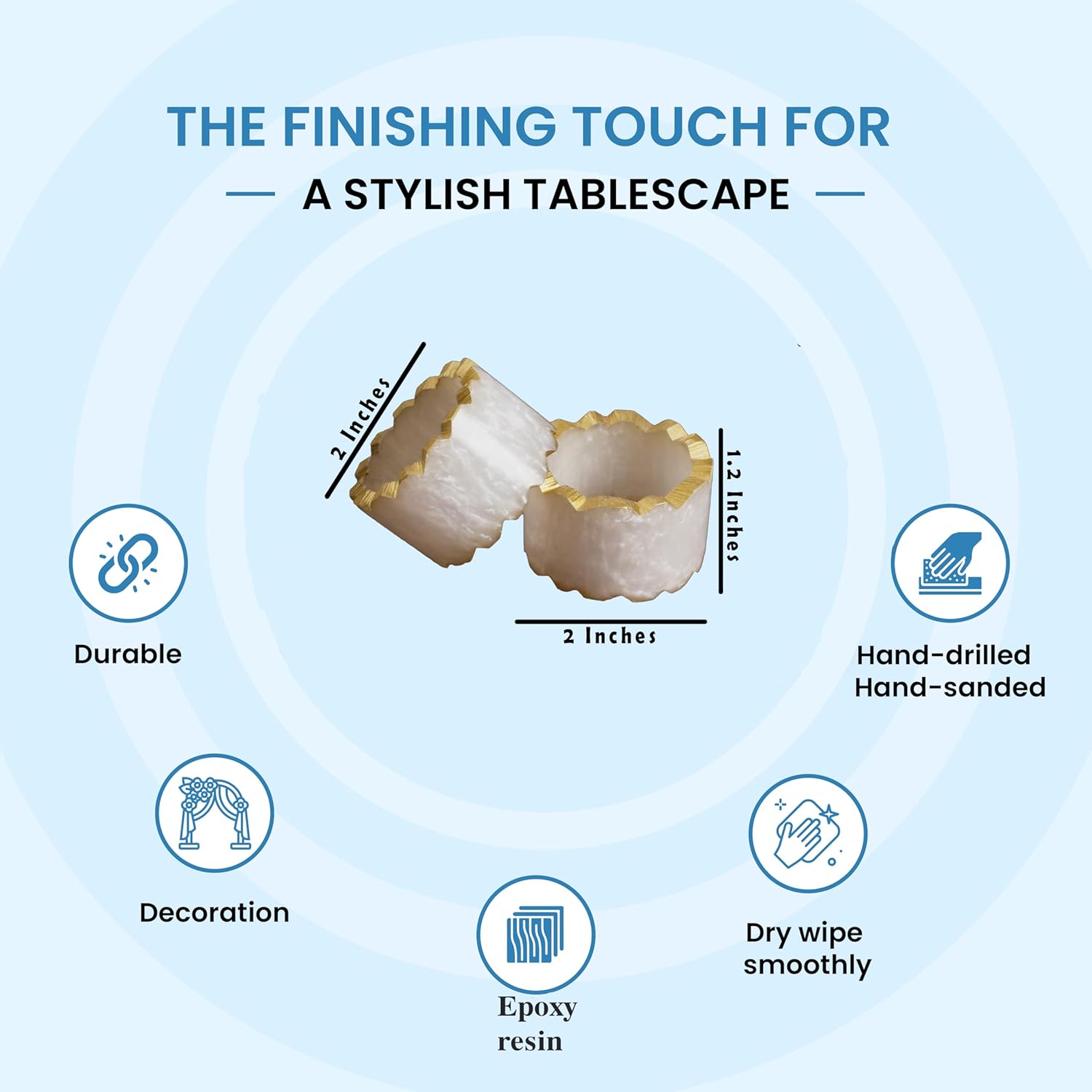 Rustic Epoxy Resin Napkin Rings Set of 6 - Napkin Holders for Parties, Dining, Family Gatherings, Weddings, Holidays, Décor, Gifting Durable Tabletop Decor (Ivory) CLEENTABLE