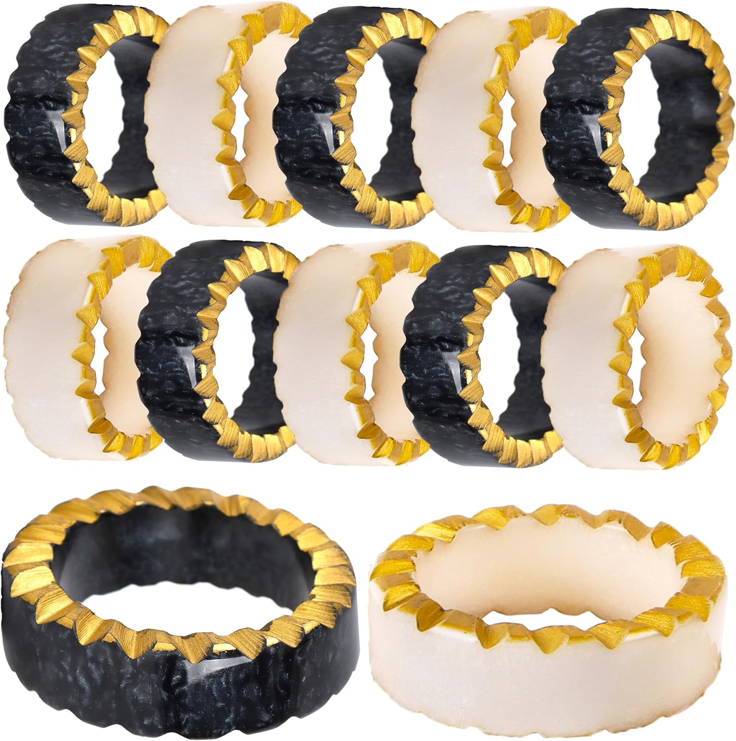 Epoxy Resin Napkin Rings Set of 12 - Rustic Napkin Holders for Dining Tableware, Dinning Table, Everyday, Wedding, Anniversary Festival Thanksgiving Party of Table Setting (Black White) - CLEENTABLE