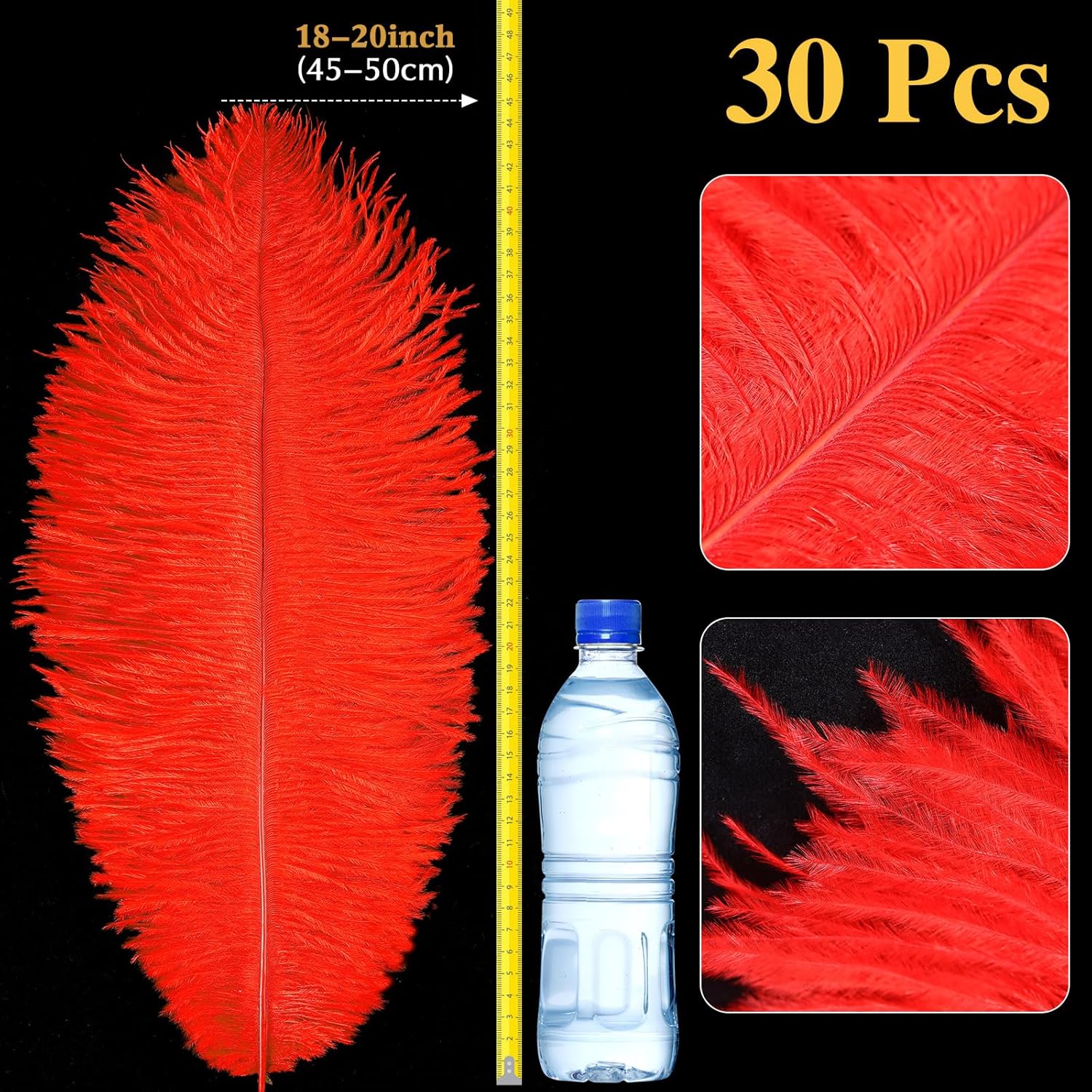 • Ideal Package to Meet Your Needs: you will receive 30 pieces of red ostrich feathers, measuring about 18-20 inches/ 45-50 cm, adequate in quantity can satisfy your diverse decoration demands; You can also share them with your friends and family to experience the beautiful atmosphere
